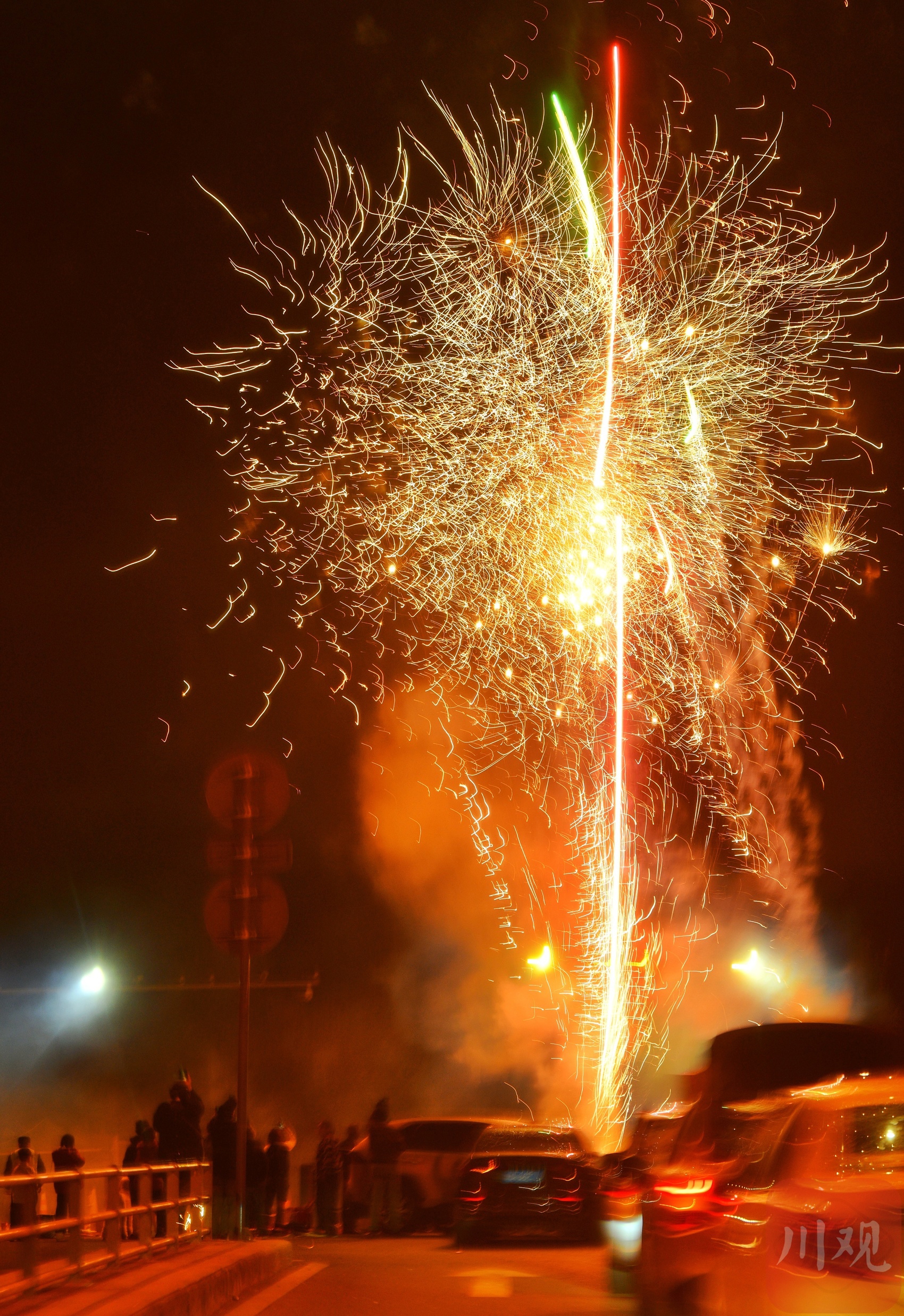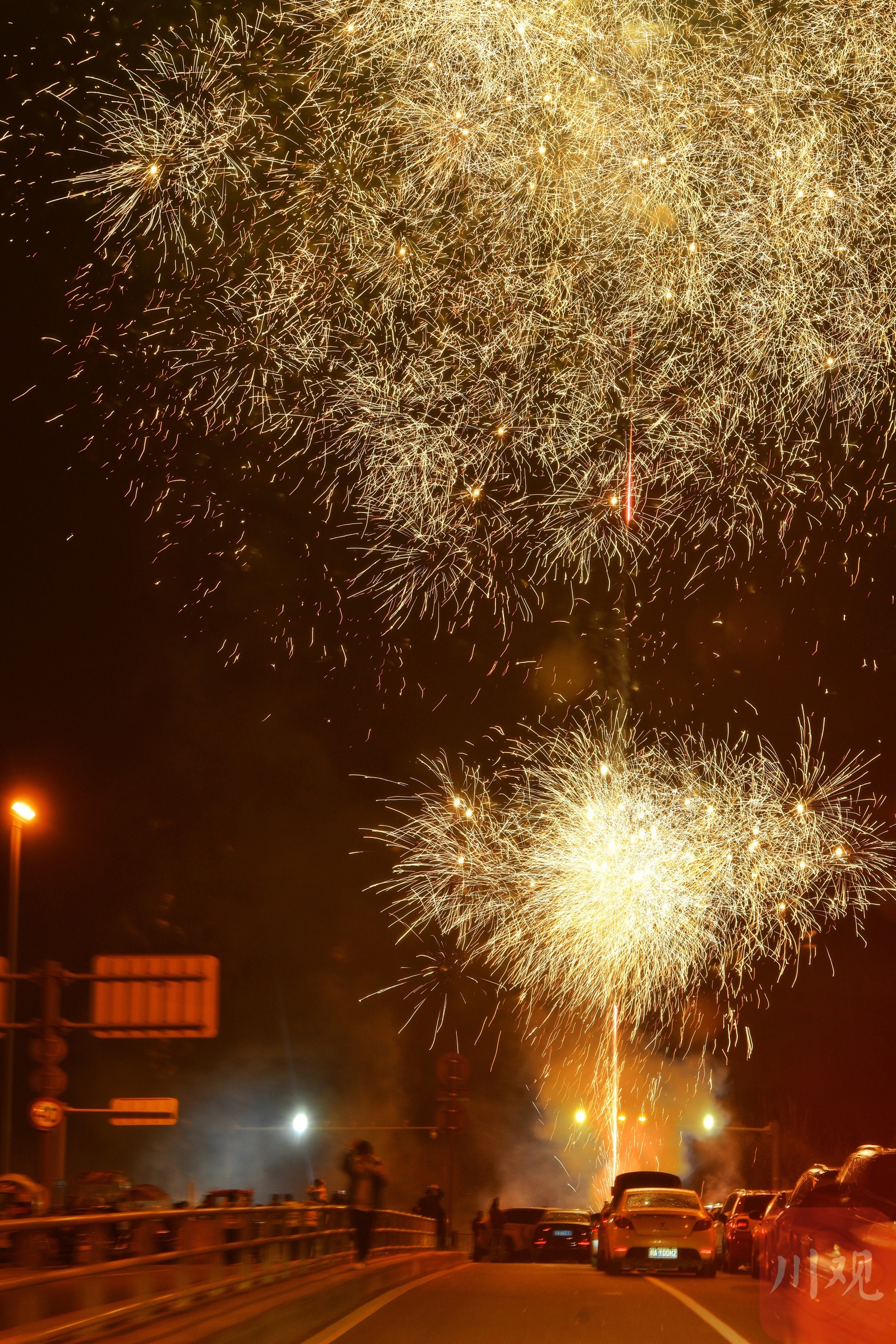 当晚,成都市区及近郊被浓云笼罩,不少天文爱好者驱车郊外,仍遗憾无缘“红月”。不见月色,市民便回归传统节庆,在郊外指定燃放点燃放烟花,声响与欢笑交织,尽显元宵热闹。