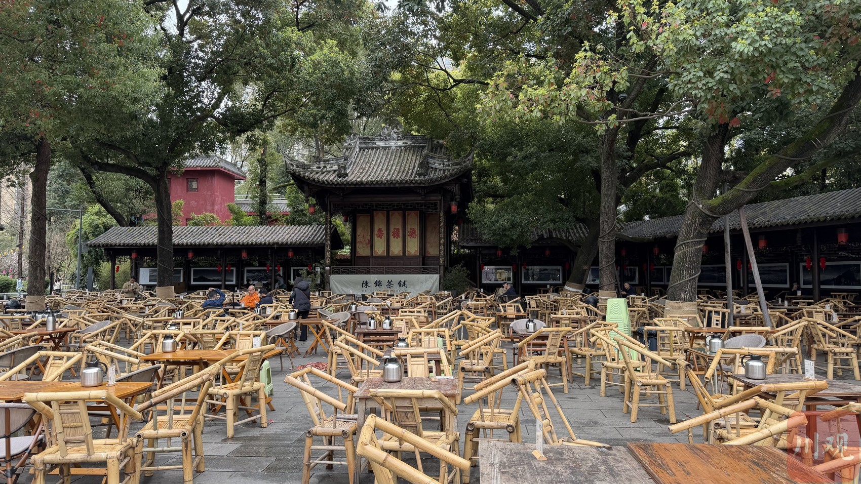 同样是茶馆,铁像寺水街里的陈锦茶铺,醒得晚一些。