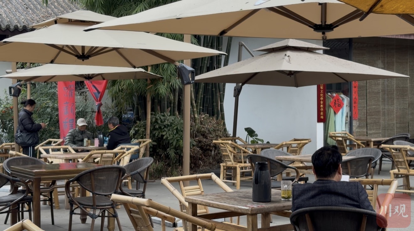 蒋碧英的左邻右舍们,大抵在同一时间,从茶香中醒来。仅她家茶馆所在位置左右400米,打着茶馆、茶铺、茶坊等店招的铺面,有30家。许多店门挨门经营,共用露天坝。定价也统一,主要分5元/杯、10元/杯两种选择。