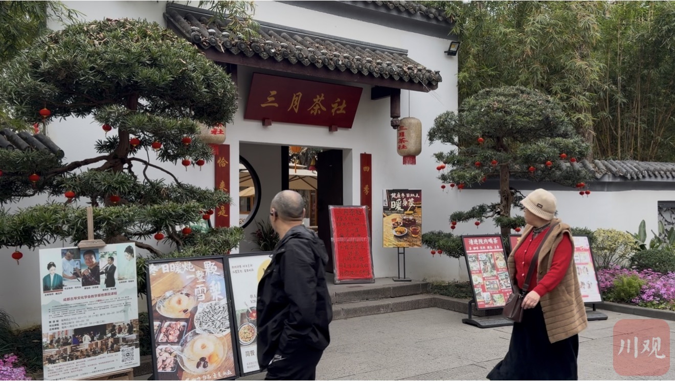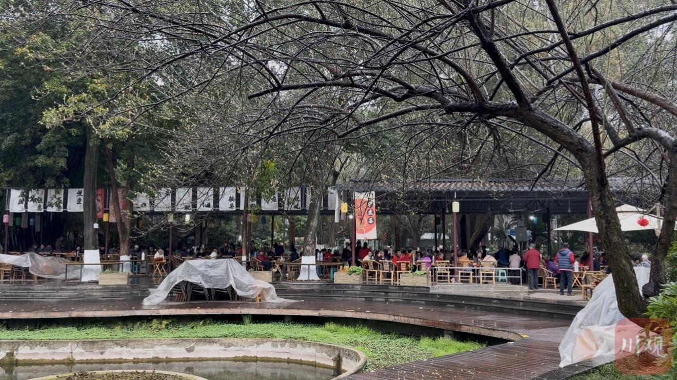 时间退回前一日,2月28日早上9点过,成都市文化公园内的三月茶社,“早茶”同样徐徐开张。彼时细雨朦胧,一行三人冒雨而来,是第一次光顾这家茶社,“我们在附近医院看病,临时来坐坐。”