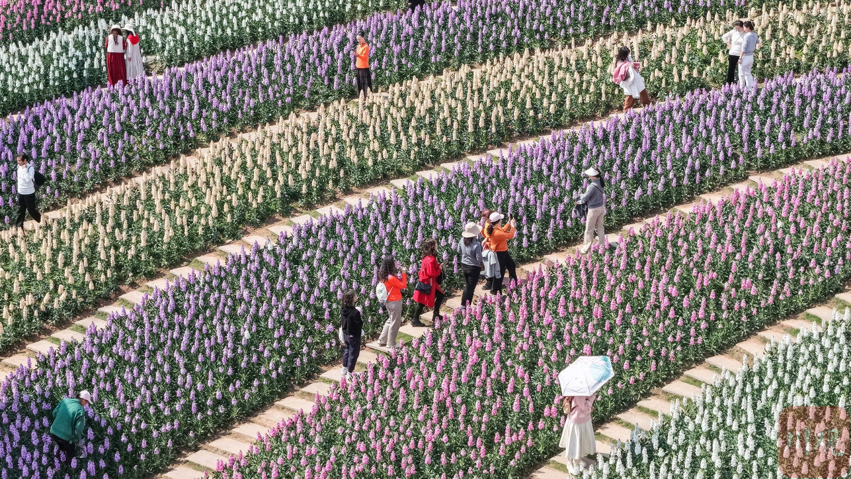 连日来,漫花庄园400余亩面积内百余种鲜花竞相绽放,红色、黄色、白色、橙色、粉色……把大地铺成了一片绚丽缤纷的花海,蔚为壮观,吸引众多游客纷至沓来,沉浸式感受春天的气息。