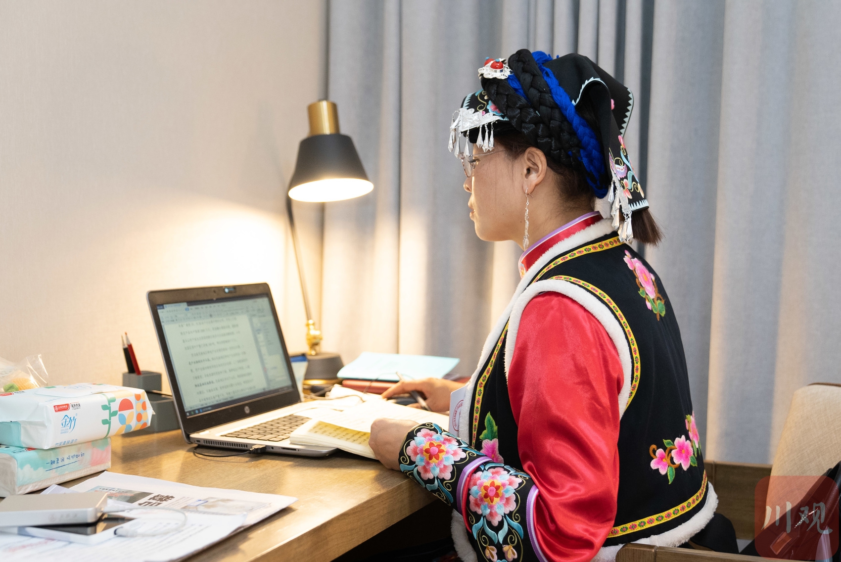 全国人大代表余绍容在驻地修改完善相关建议。