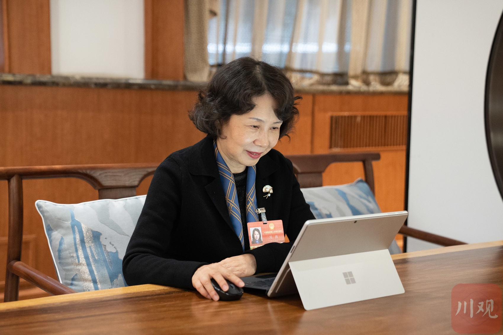 全国人大代表冯远在驻地修改完善相关建议。