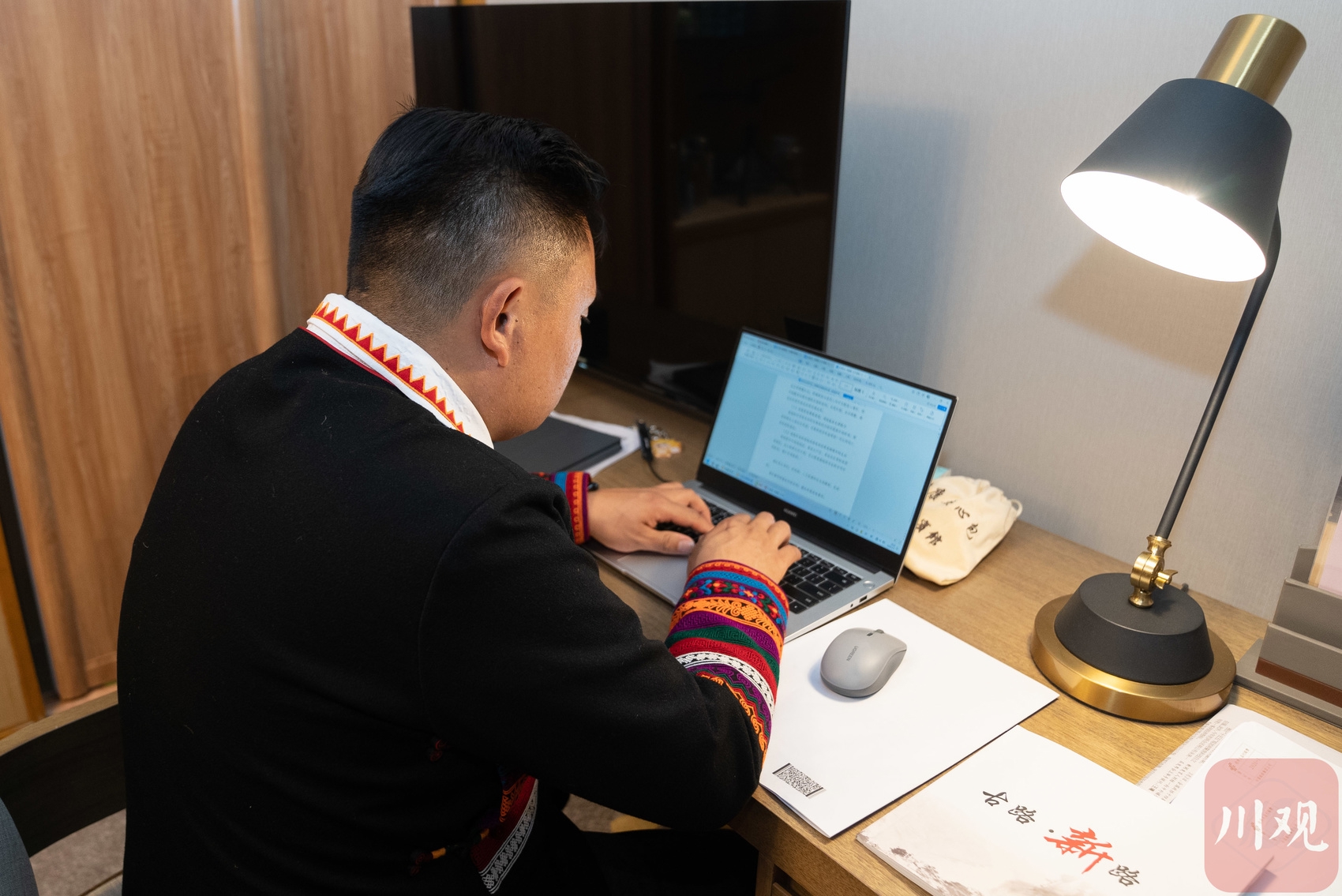 全国人大代表郑望春在驻地修改完善相关建议。