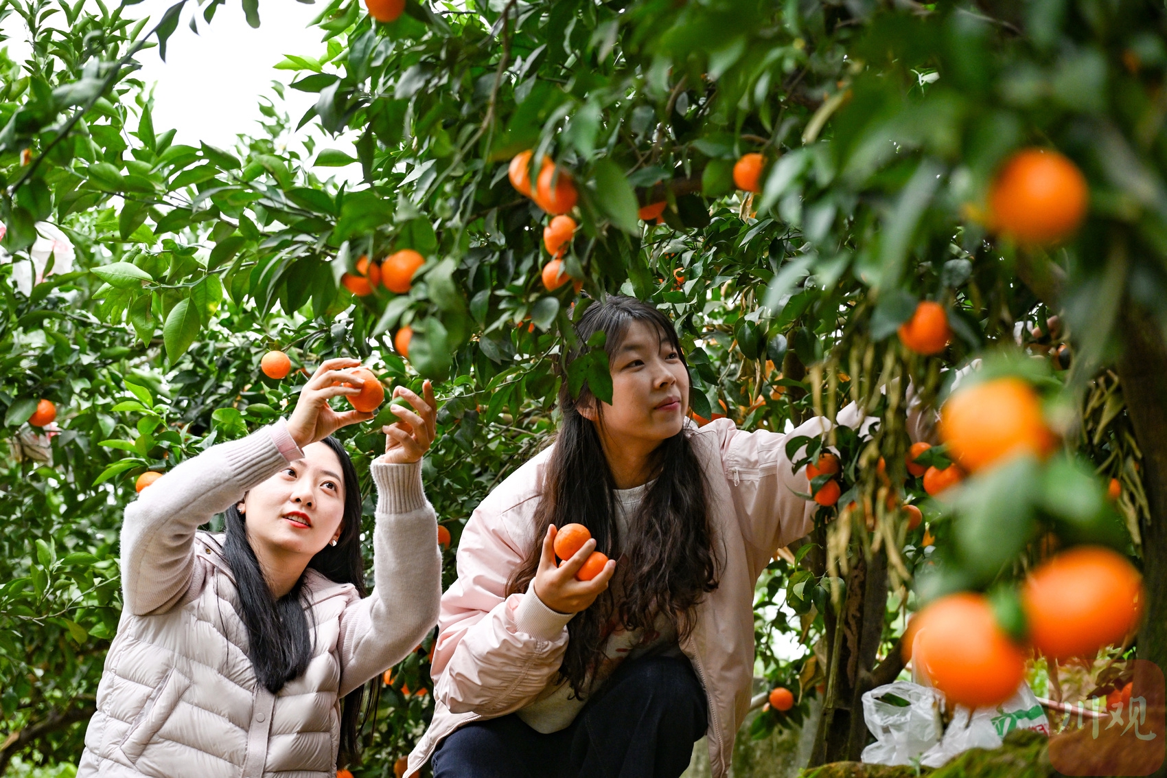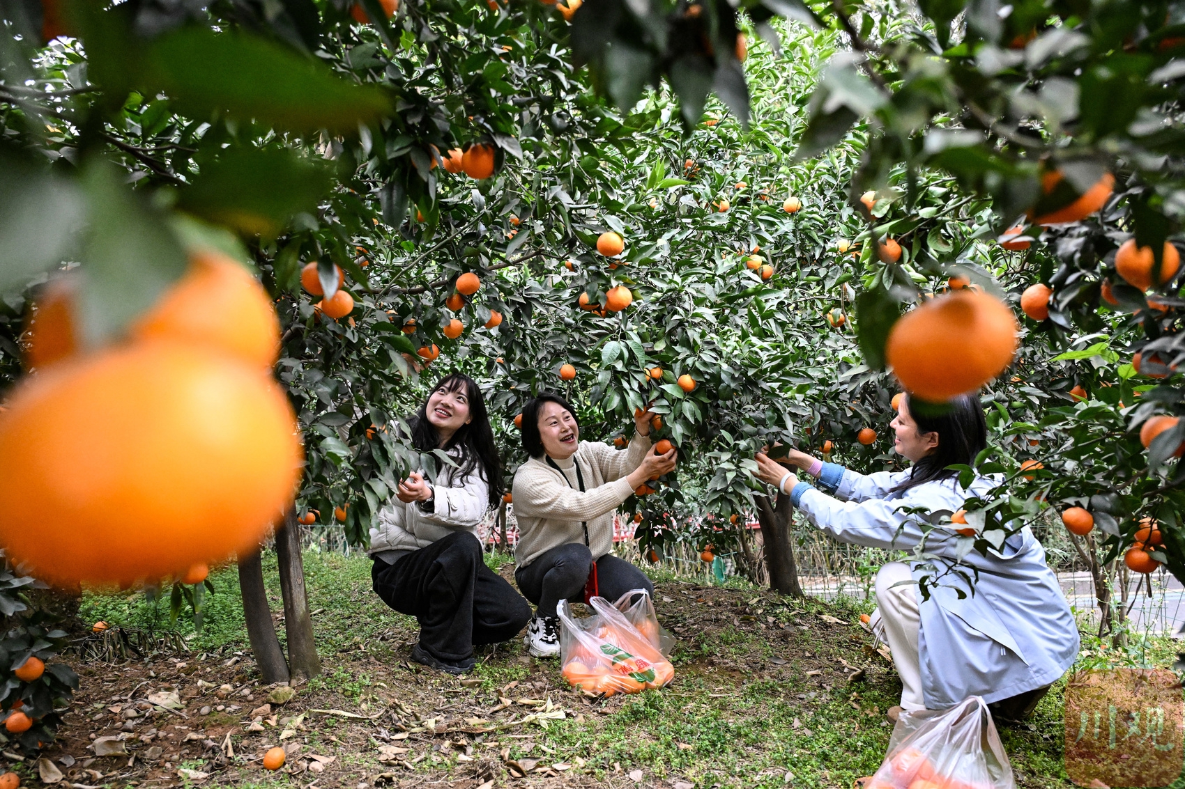 2026年3月5日,在四川省成都市双流区永安镇梨园村,女性职工体验水果采摘的乐趣。