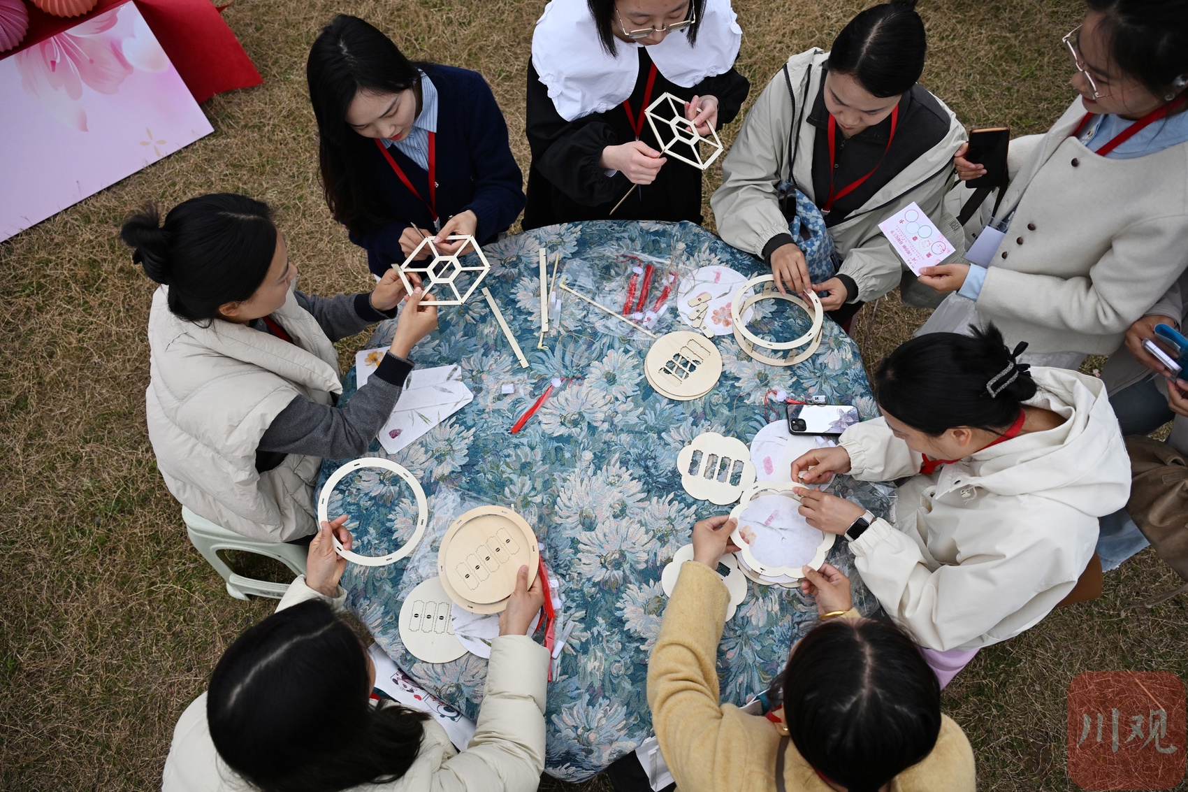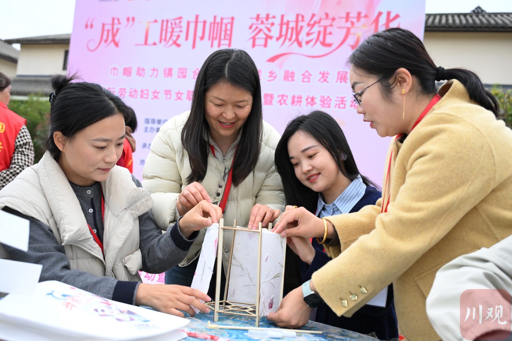 2026年3月5日,在四川省成都市双流区永安镇梨园村,女性职工一起体验制作手工花灯。