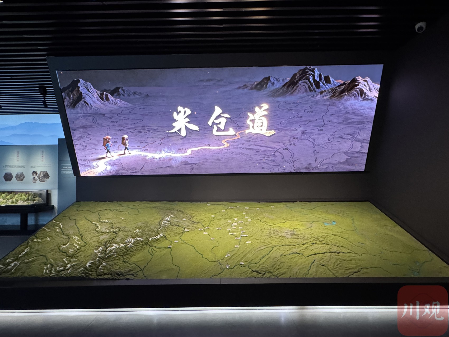 在博物馆内,有一个大型沙盘,生动复原了米仓道“三干多支”的路网格局,即东线为汉中—通江—阆中、中线为汉中—南江—巴中、西线为汉中—旺苍—阆中,再辅以洋壁道等支线及延长线,形成了“主线清晰、支线密布”的网状结构。