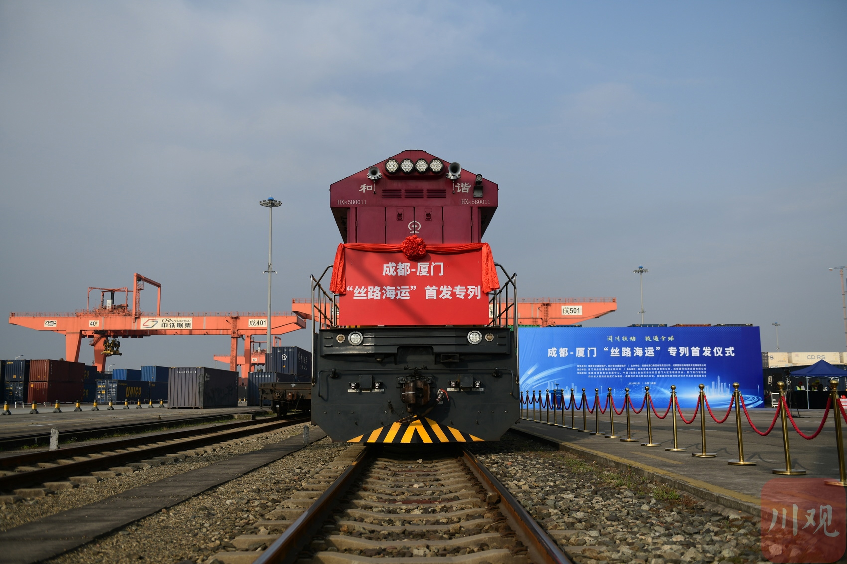 3月5日上午,一列满载机电产品、农副食品及汽车配件等货物的班列从成都国际铁路港鸣笛启程,将直达厦门港,随后换乘海轮出口至东南亚地区。