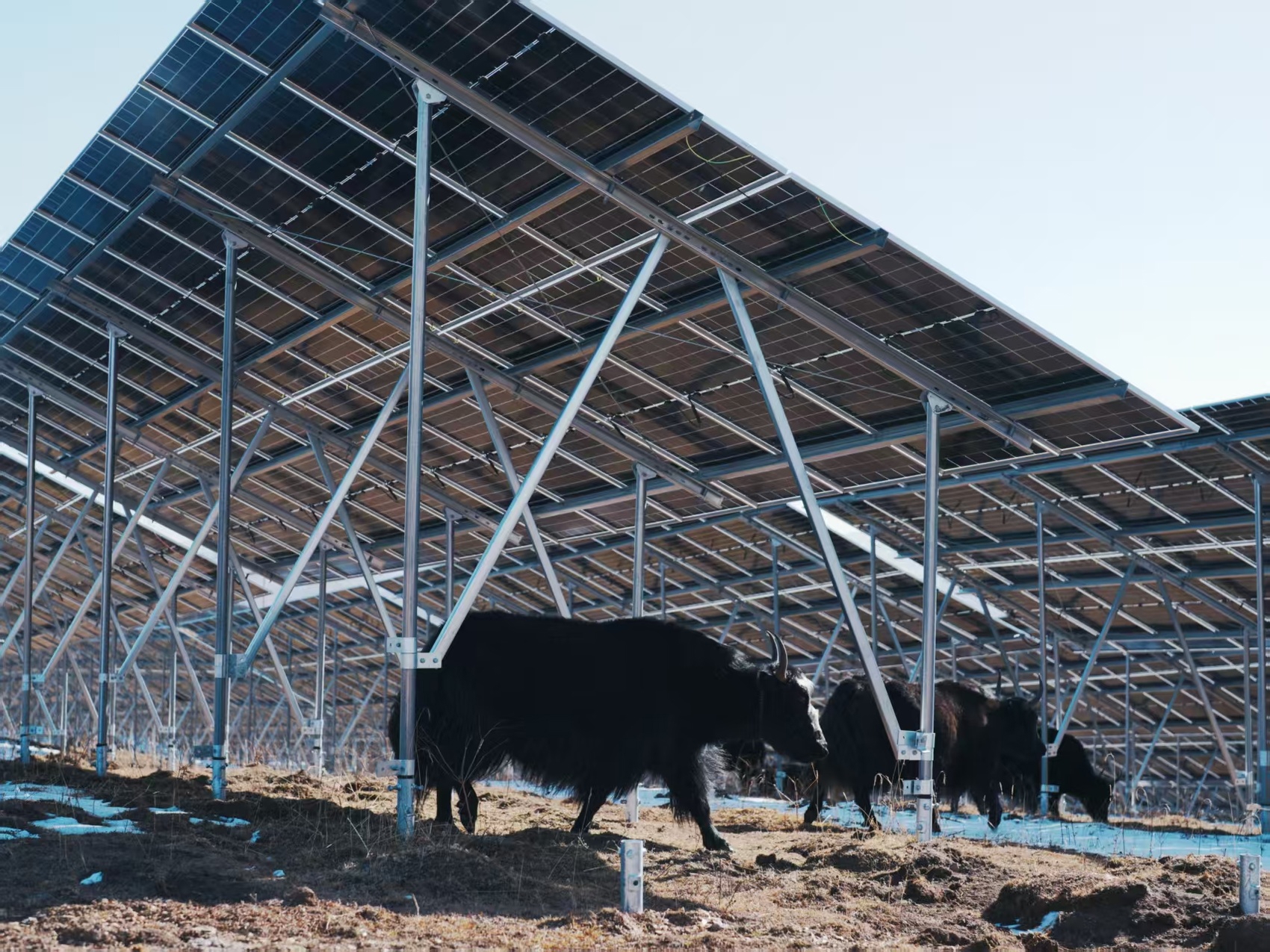 华电四川帮扶红原县打造“板上发电、板下放牧”草光互补模式。
