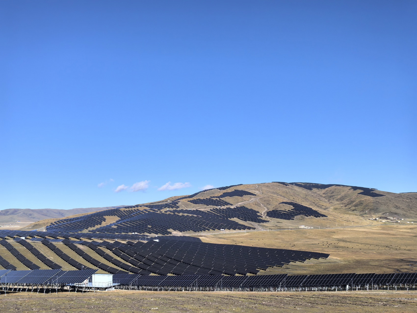 记者了解到,该项目为红原安曲100万千瓦光伏的配套民生项目,供暖面积总计约40万平方米。“目前一期25万千瓦光伏项目已全容量投产,二期项目已备案通过,正在筹备开工建设,争取早日建成投产。”上述工作人员表示,下一步将创新应用光热供暖技术,开辟高原严寒地区绿色节能供暖新路径,同时打造“板上发电、板下放牧”草光互补模式,实现生态与经济双赢。