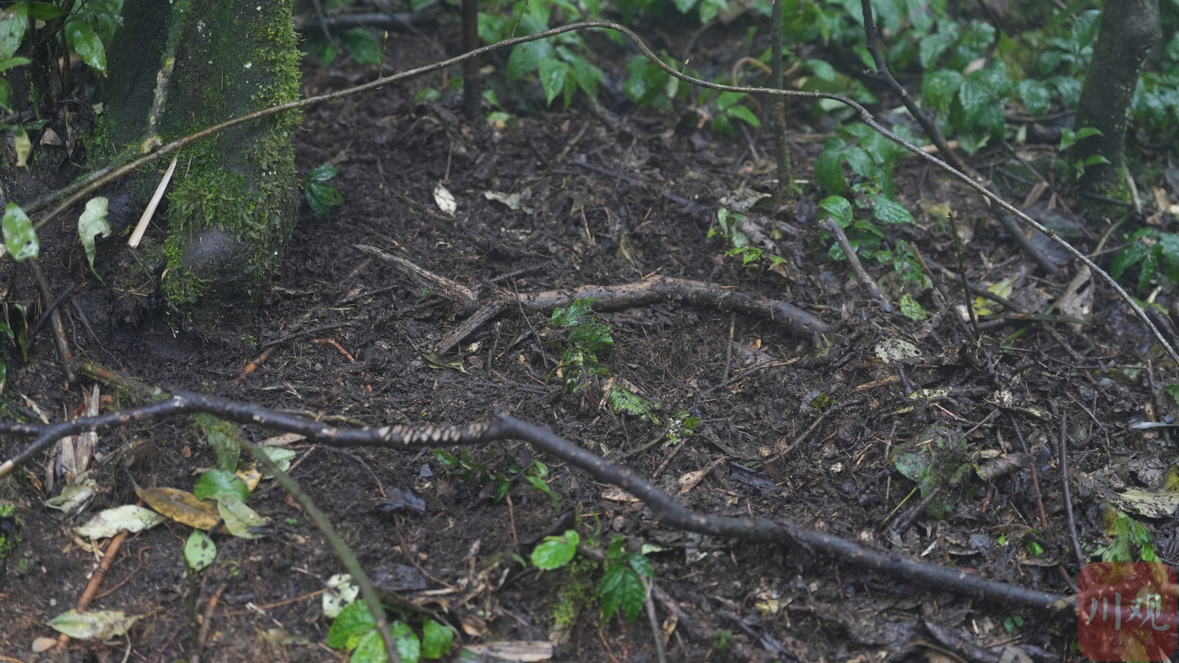 去年6月,保护区建成了5个野化训练笼舍,每个面积600平方米,去年7月正式投入使用。为了还原四川山鹧鸪的自然生境,建笼舍时保留了原有的树木和八月竹及林下植被。地面上厚厚的枯枝落叶,既是鸟儿藏身的地方,也隐藏着蚯蚓、蜗牛等小动物——这就是它们未来的“食堂”。
