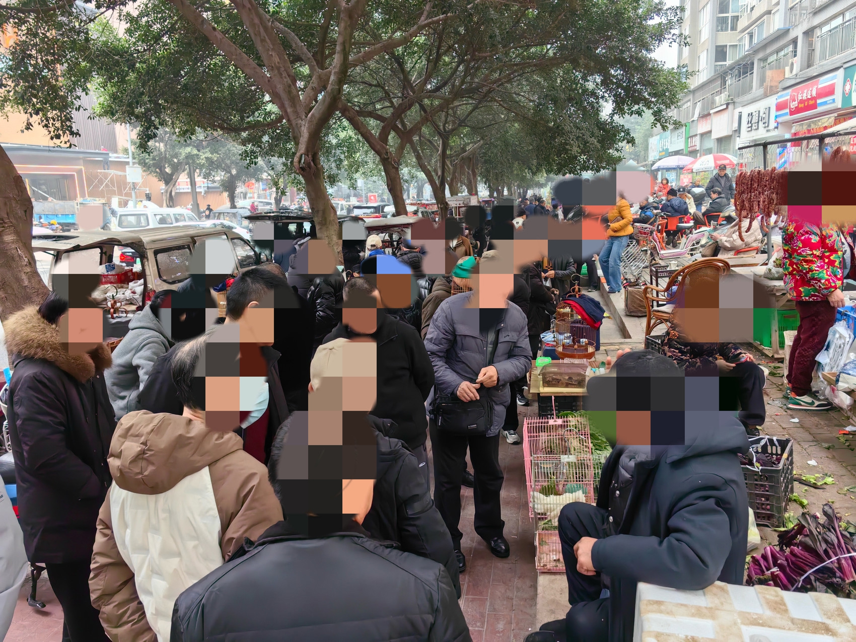 以往该街道聚集大量人群买卖鸟类。受访者供图