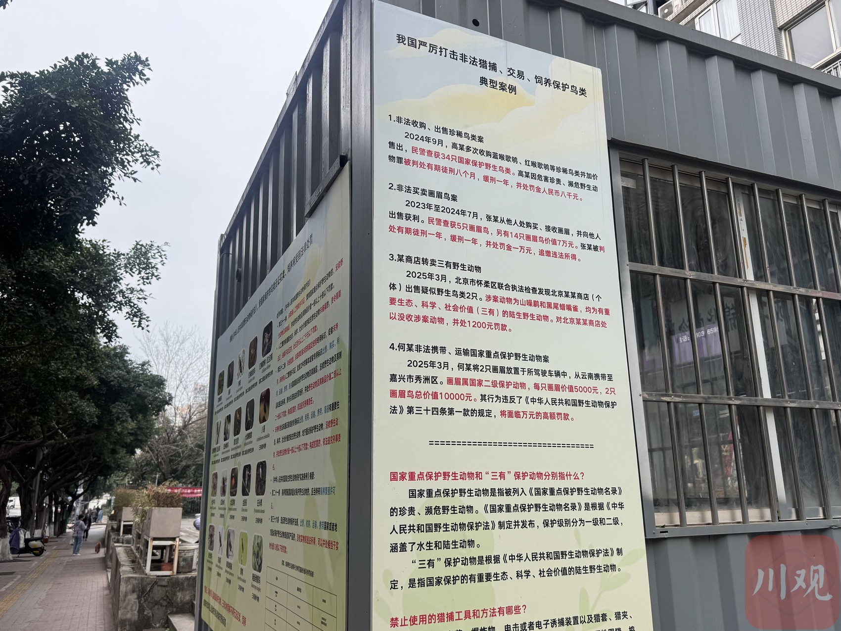 四川省林草局野保站相关负责人表示,四川全省正持续整治不规范鸟类交易场所。“对存在非法交易行为的鸟贩子,已联合公安部门依法查处;对少数证件齐全、合法经营的摊主,则加强普法宣传,引导其进入正规花鸟市场规范经营。”