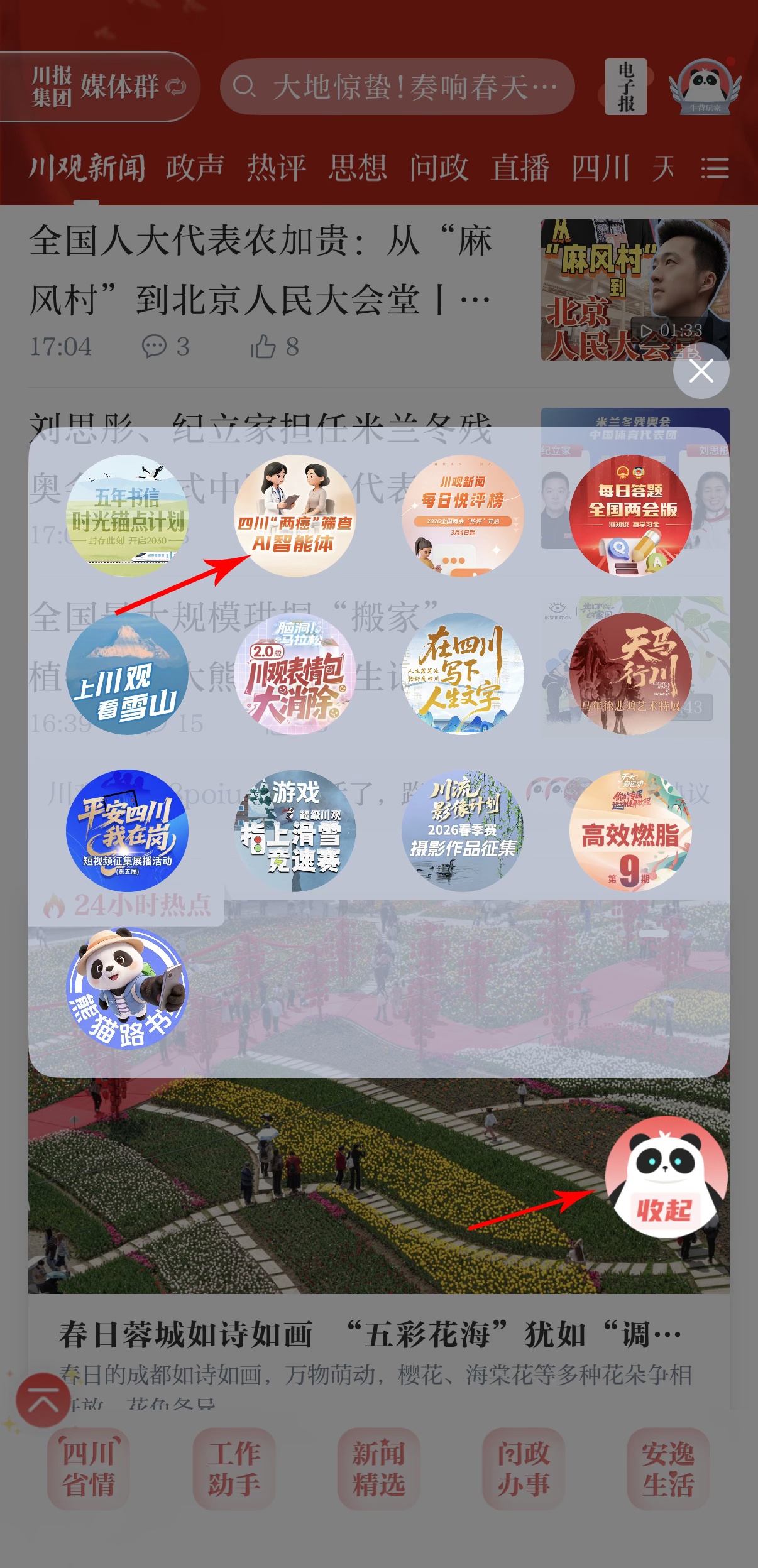 2.在川观新闻首页,点击右下方悬浮球,找到服务图片,点击即可进行查询。