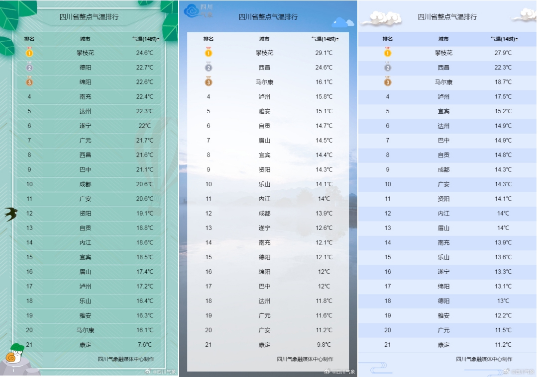 在上一轮降温降水过程中,四川盆地一些城市日最高气温降幅超过了10℃,相信大家都有感觉。