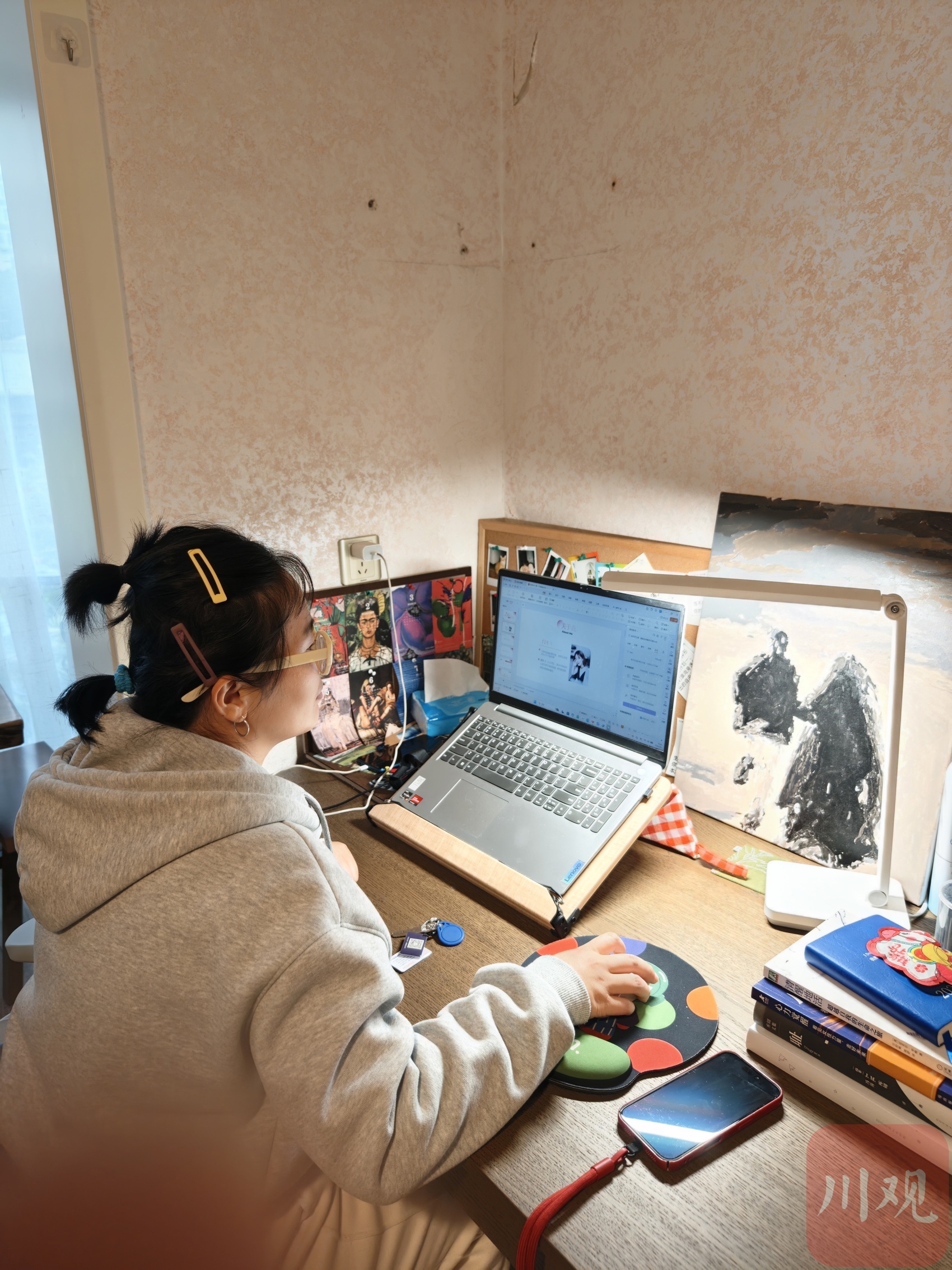 “一人公司”播客主理人门冬冬正在工作。罗韬 摄