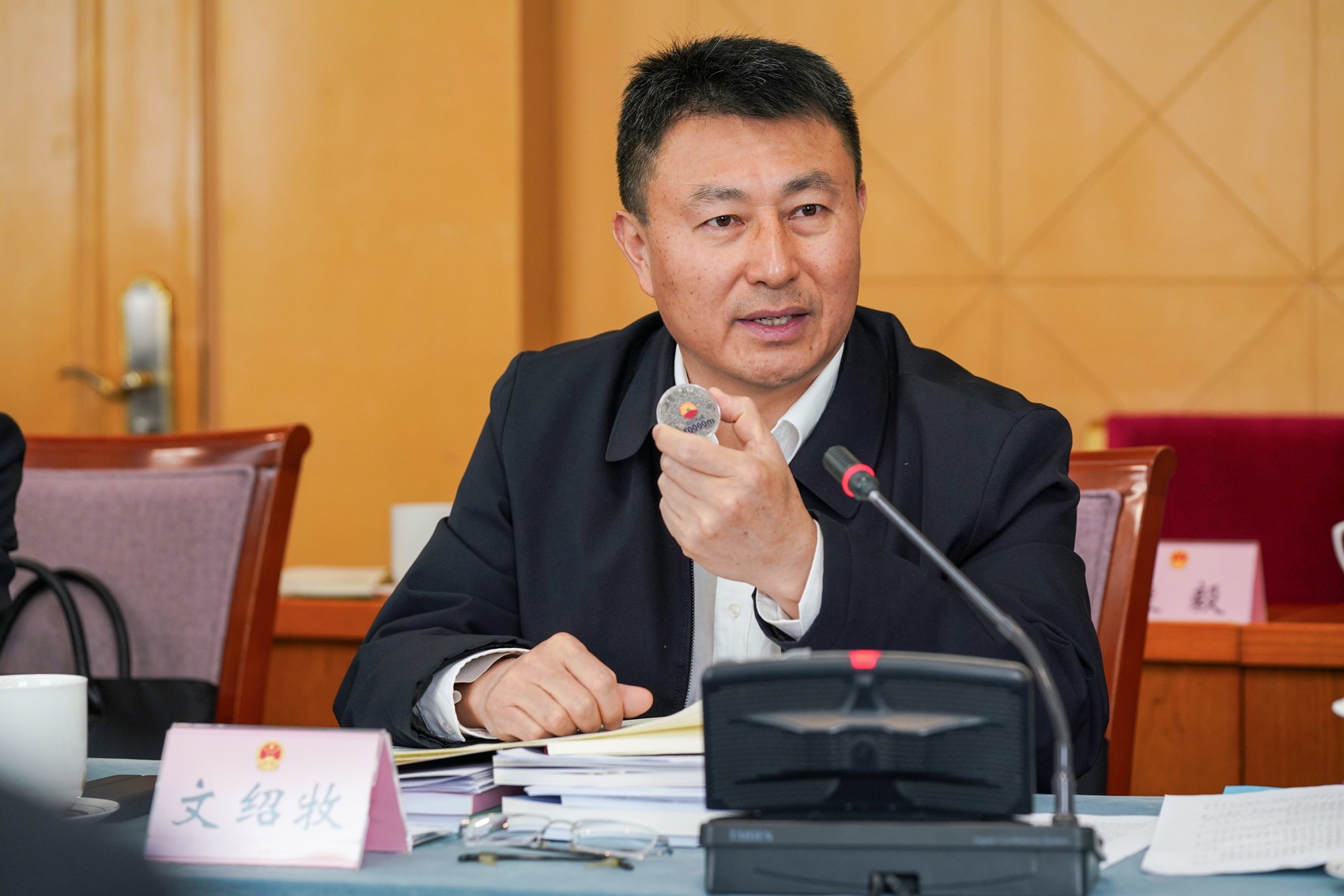 文绍牧在四川代表团小组讨论发言。