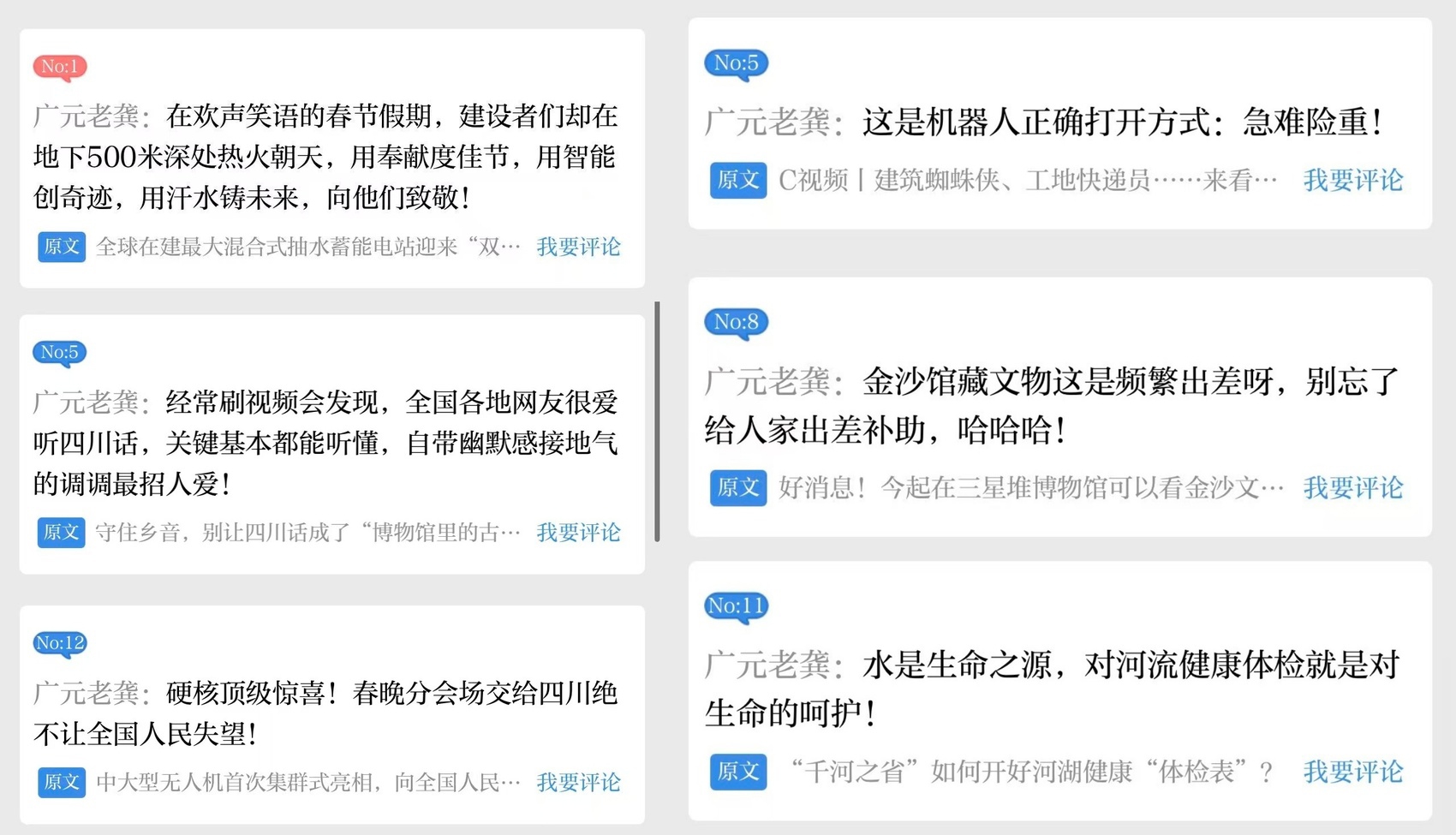 @广元老龚 是来自广元的龚先生,他一直活跃在川观新闻评论区,其评论简约有趣。“新闻评论区是最精彩的地方,各种观点交锋,我很喜欢看。”龚先生说,自己曾从事过文字工作,遇到自己喜欢的文章或话题,会忍不住写上几句评论。