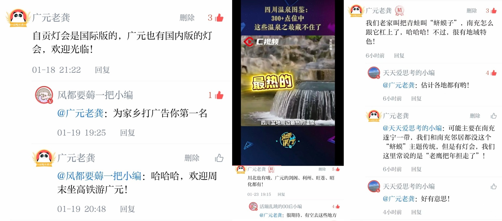 有趣的是,遇到四川各地景区、美食、风俗等相关文章时,龚先生留言评论时,总是力荐广元,堪称“为家乡打广告第一名”!对此,龚先生笑着说:“自己的家乡,多推荐下总是没错的!”