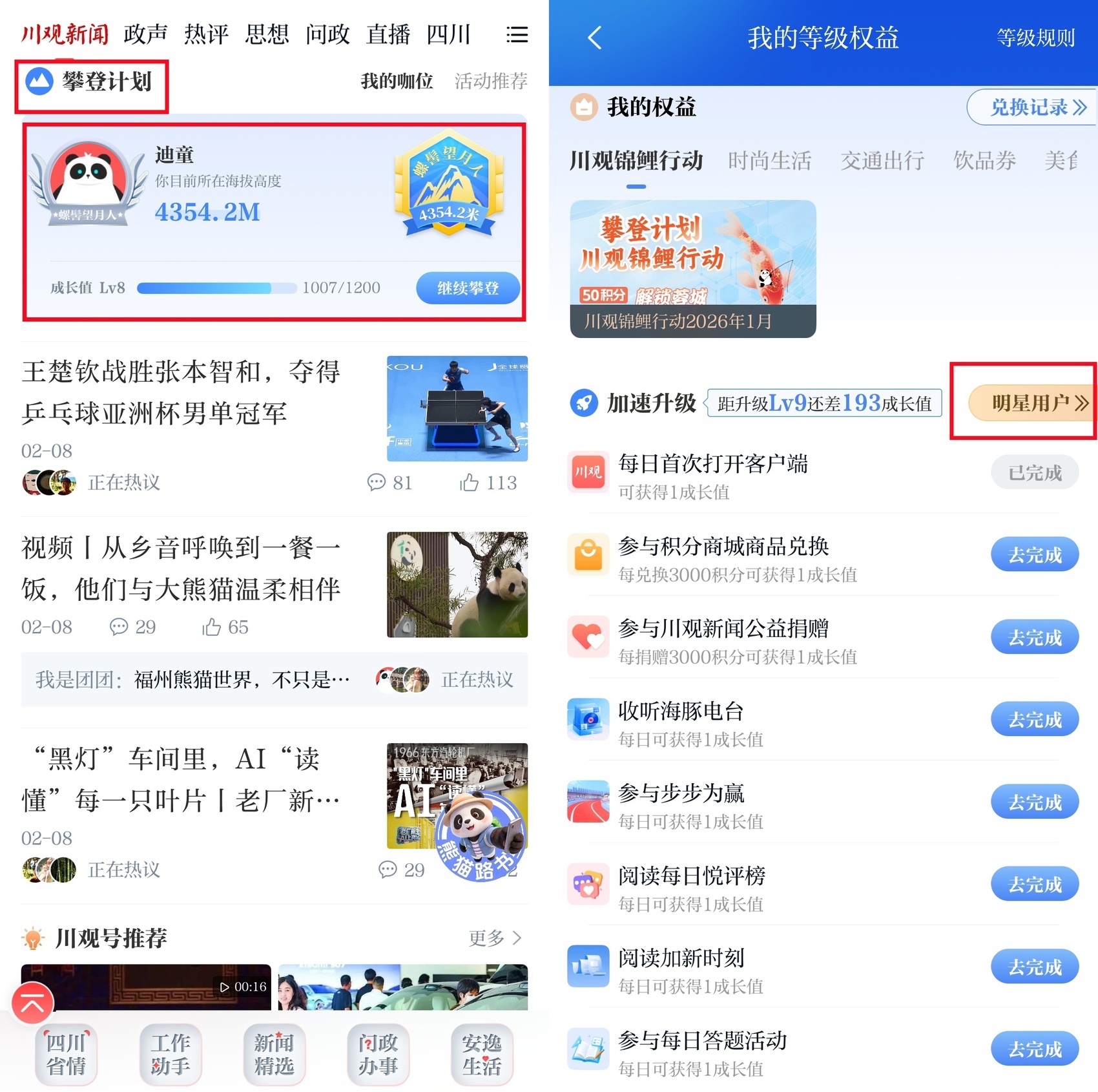 @yydy 是来自成都的李先生,对于自己获得“川观悦动者”,他一点都不意外。“我每天都会打开川观新闻,听海豚电台、参与答题、提交‘步步为赢’步数……”李先生说,自己是川观新闻的忠实用户,一直参与“攀登计划”(点击参与),通过积分兑换、参与答题、阅读每日悦评榜等多种形式赚取成长值,以此提升自己的“攀登计划”等级。