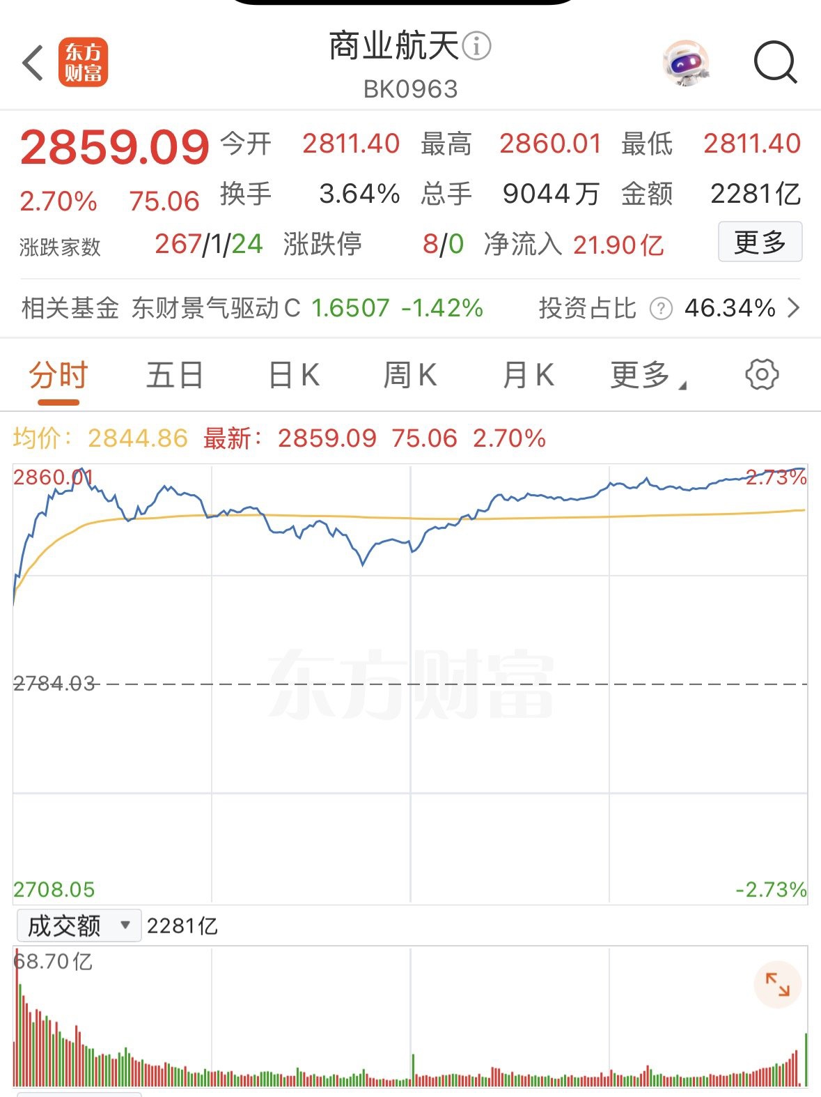 沉寂了一段时间的商业航天板块也在今日卷土重来,全天上涨2.7%。消息面上,商业航天将迎来密集发射,从3月下旬至4月,天兵天龙三号、星际荣耀双曲线三号、蓝箭朱雀三号、深蓝星云一号、中科宇航力箭二号等型号进入入轨或回收实验阶段。火箭一飞冲天,行情顺势而起,不少投资者认为商业航天迎来了技术与估值双层窗口。