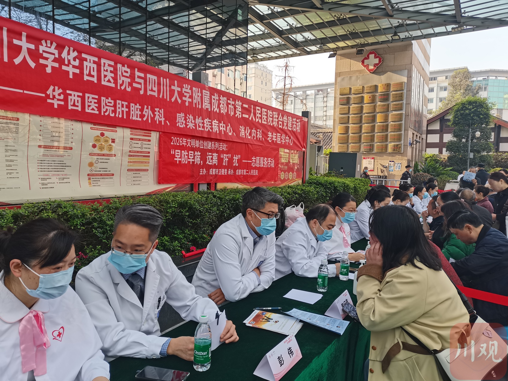 今年3月18日,是第26个“全国爱肝日”,今年的宣传主题是“遏制肝硬化,远离肝癌”。3月11日上午,四川大学附属成都市第二人民医院(庆云院区)门诊楼前,人头攒动,该院联合四川大学华西医院在这里开展大型专家义诊活动,来自四川大学华西医院肝脏外科、感染性疾病中心、消化内科、老年医学中心和四川大学附属成都市第二人民医院普外二科的专家们为市民们把脉问诊,宣传肝病健康科普知识,提高他们的保肝爱肝意识。