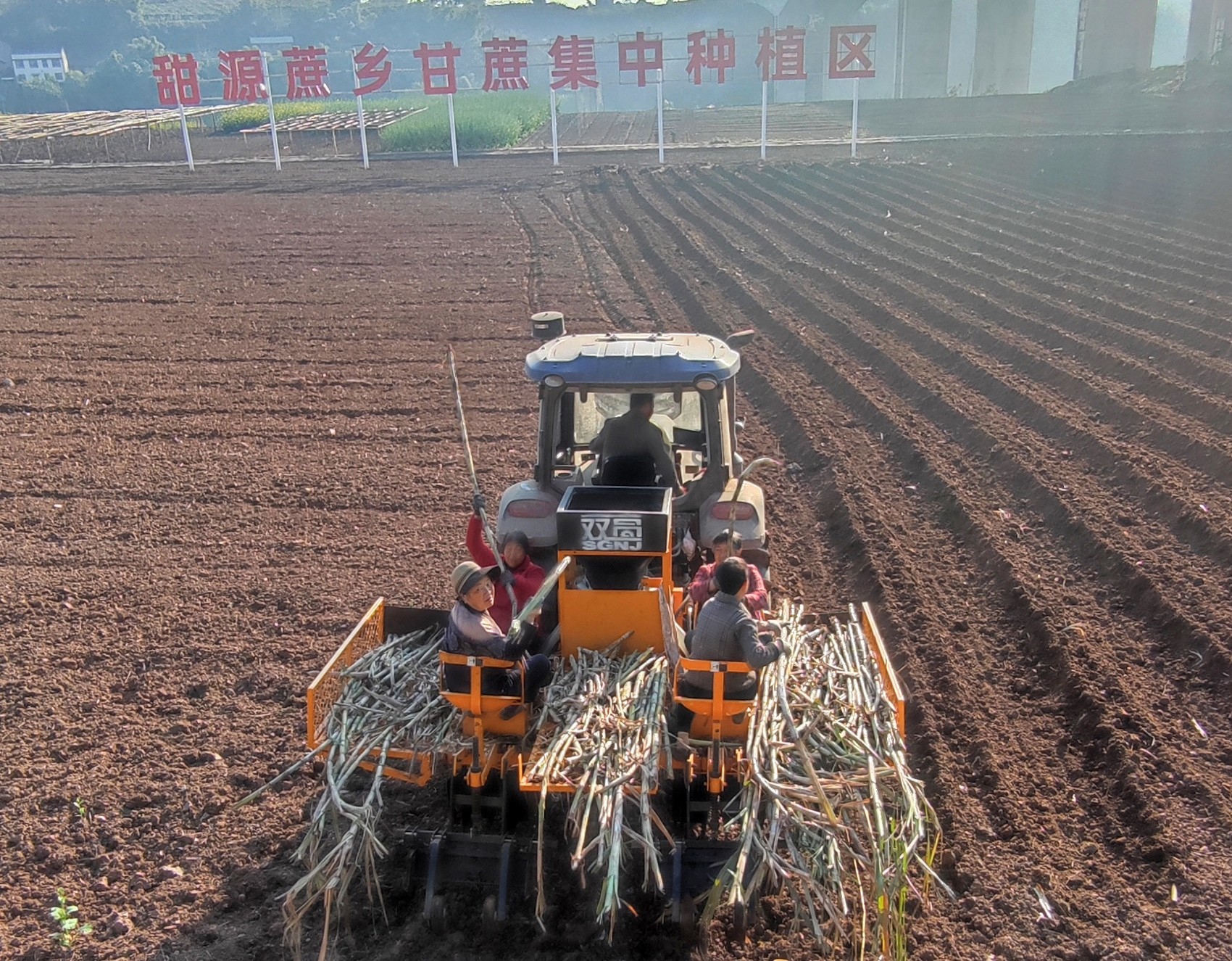 据介绍,从排沟、施肥、切种、投种到覆土,以往人工播种一亩甘蔗,全流程一个人需要7—8天,而机械化播种,上述流程一次就能完成,最高可达1小时播种3亩,作业效率至少提升10倍。内江鑫永凌建设开发有限公司工作人员付生辉介绍,综合汇算成本,机械化播种比起传统人工播种每亩地至少可以节约200元播种成本,“除了播种外,基地的甘蔗中耕培土机器也已到位,管理过程中的抗倒伏工作也可以机械化。目前,我们和内江市农科院还在进行甘蔗采收机的采选,预计下半年将正式投用,争取在今年实现甘蔗种植的全流程机械化。”