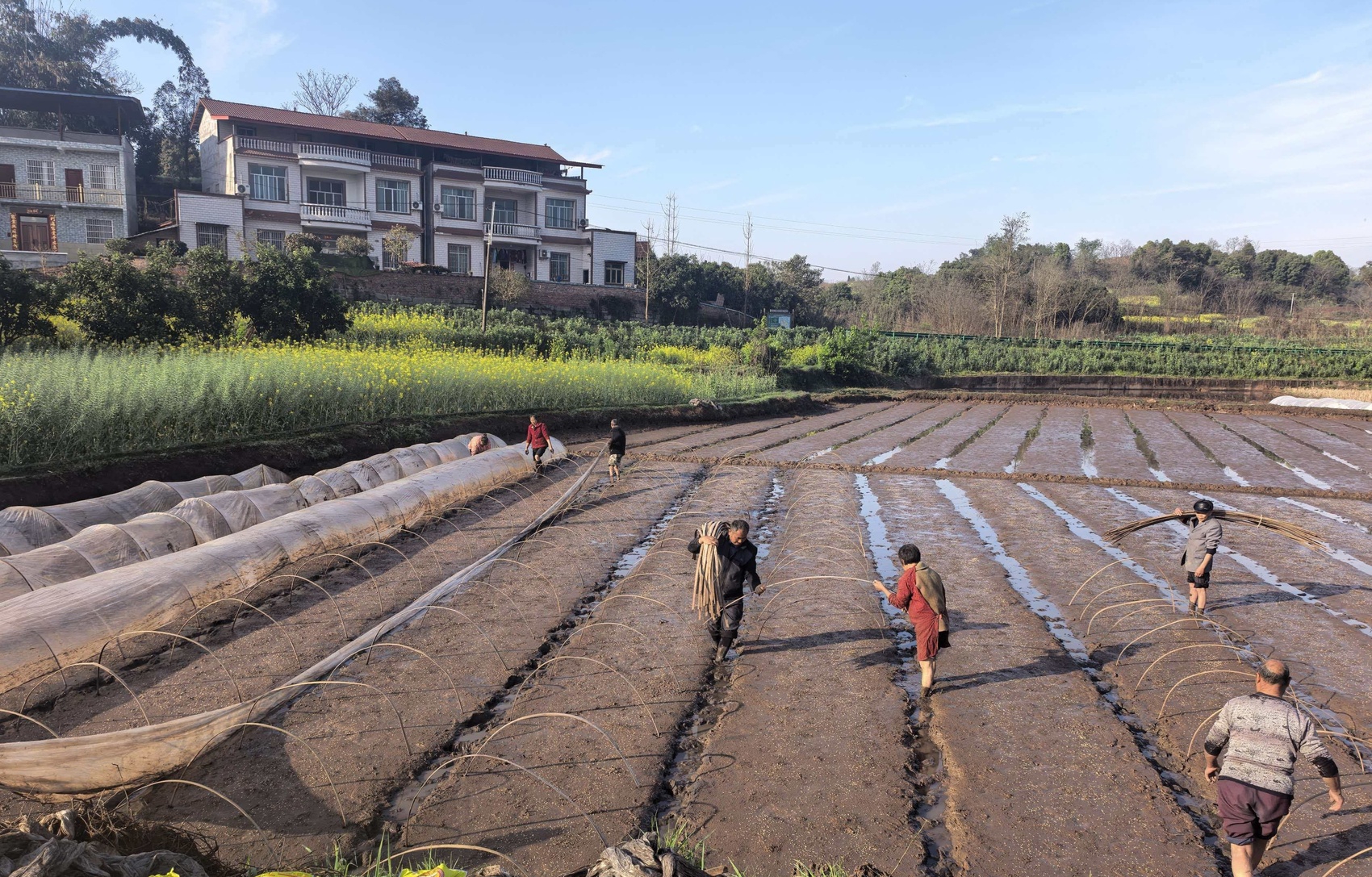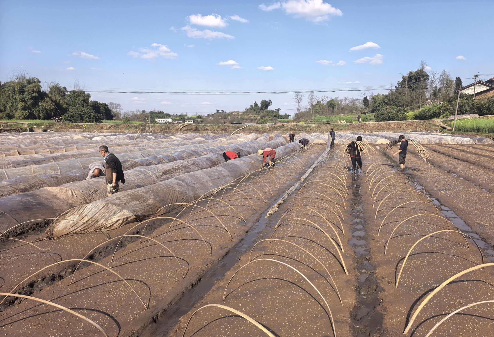 当天上午,班竹村的育秧现场,种田能手中不少来自邻村。钱有芬手脚麻利地铺好薄膜,又用泥土固定边缘,据她介绍:“前几天我在胡家村干,今天到班竹村来,哪里有合适的活,我就去哪里。”