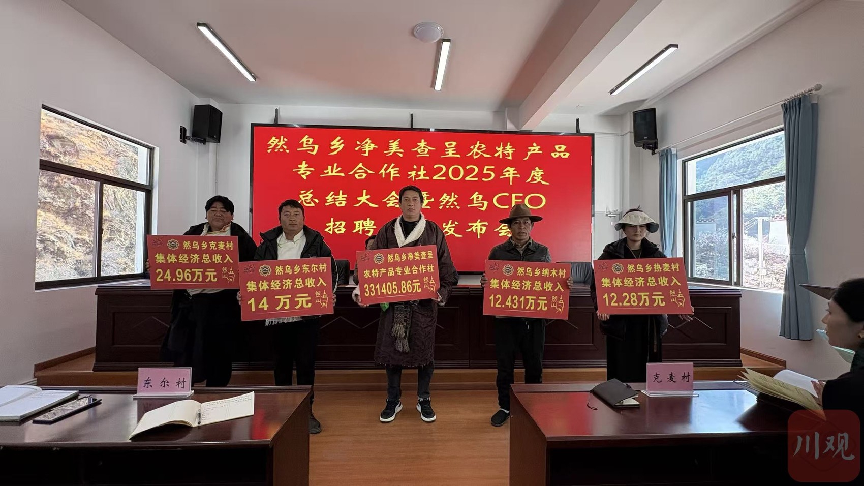这是乡城县然乌乡净美查呈农特产品专业合作社2025年度总结大会现场,也是村民们一年一度最期盼的“分红日”。乡党委书记罗姣站在台前,声音洪亮地宣布:“去年合作社总收入突破33.1万元,四个村的集体经济全都交出了亮眼成绩单!”话音未落,台下响起热烈的掌声。