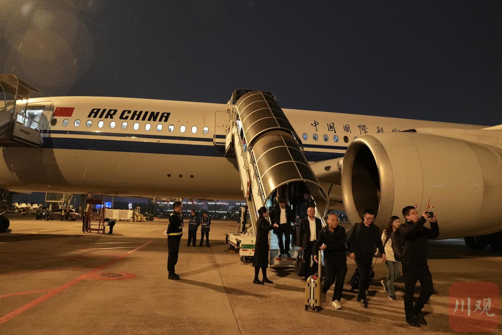 3月12日晚,出席十四届全国人大四次会议的四川代表团代表,在圆满完成大会各项议程后,乘机返回成都。