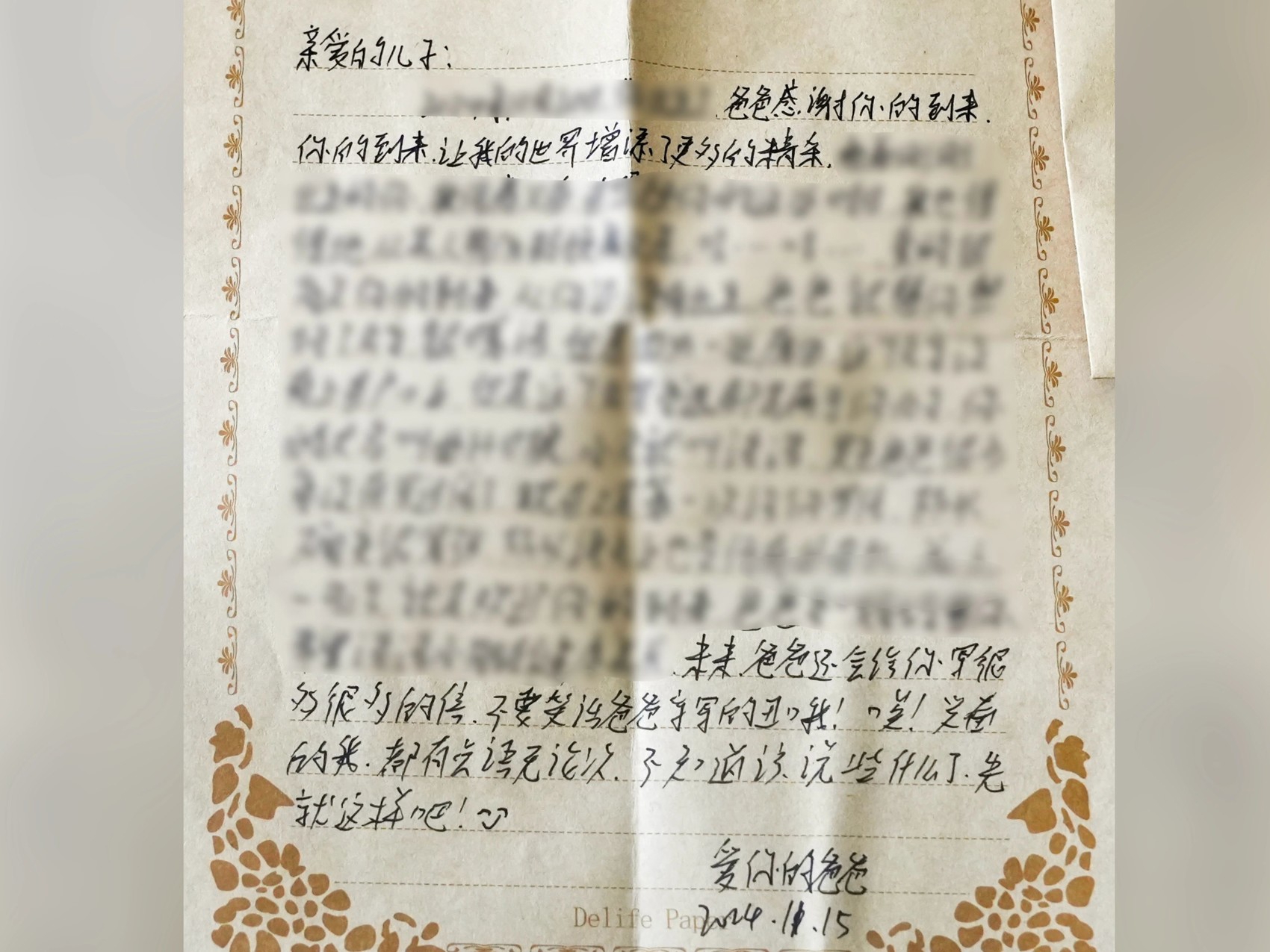 银小强写给儿子最后一封信的部分内容。