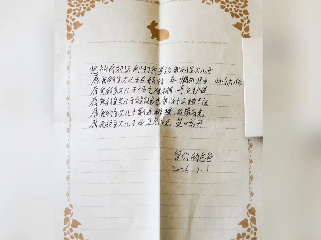 “儿子,你的到来让我的世界增添了更多的精彩,爸爸妈妈爱你,希望你健康成长,爸爸还会给你写很多很多的信。”2024年10月,银小强的儿子出生。初为人父的喜悦,是那样真切而滚烫。但他更知道,自己是一名刑警,肩上扛着守护一方平安的重担。由于妻子和儿子长期在乡镇工作生活,陪伴成了一种奢侈。于是,银小强拿起笔,决定用写信的方式,陪着儿子慢慢长大。