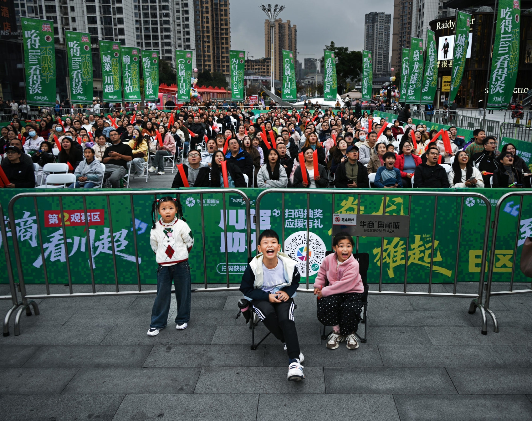 2025年11月16日,自贡市华商国际城文化广场,自贡球迷与观众收看比赛直播。C视觉签约摄影师 杜友山