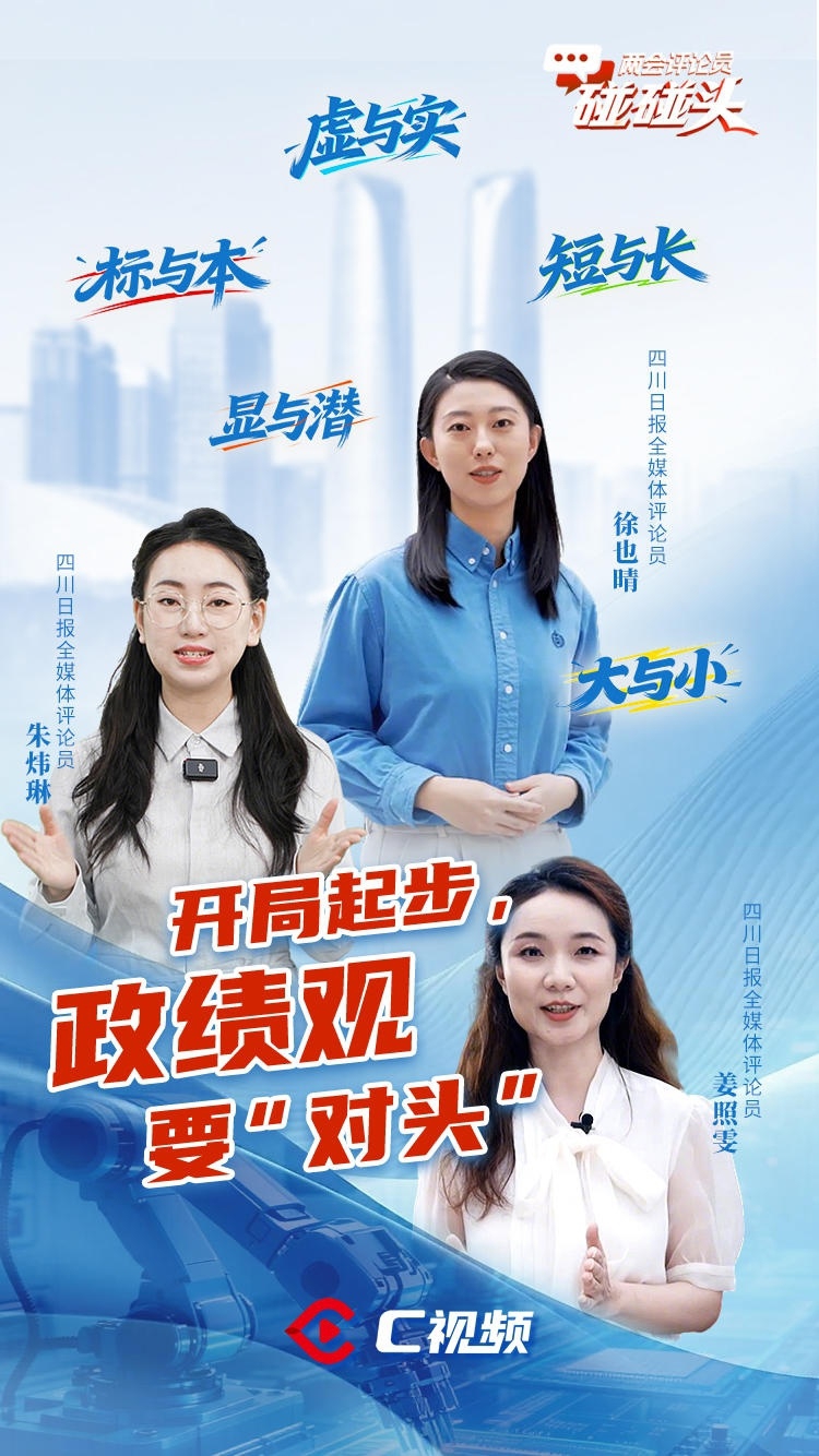 观点碰撞,辩证解析“政绩观”。3月5日,川报全媒体结合习近平总书记参加江苏代表团审议时的重要讲话精神和政府工作报告相关内容,于当天推出《开局起步,政绩观要“对头”丨两会评论员碰碰头》融媒产品,以虚与实、短与长、显与潜、大与小、标与本等“五对辩证关系”为切口,系统论述在“十五五”开局起步、挑战交织的关键节点,如何将正确政绩观贯穿中国式现代化建设进程。产品打破单一文本形态,创新采用一组5篇深度评论、3位评论员碰头聊政绩观的短视频、一组5张关键词海报等多维呈现,让评论实现可视化、互动化、年轻态传播,全网传播量1859万。