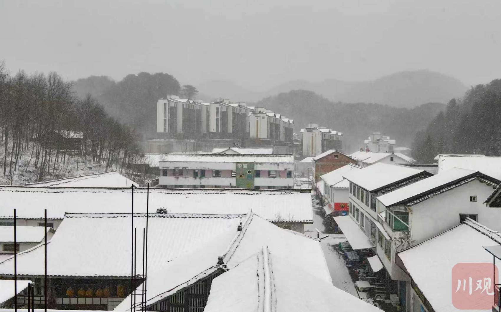 2026年3月14日,受南下冷空气影响,广元市朝天区曾家山高海拔片区迎来一场春雪 。凌晨起,漫天飞雪持续飘落,为刚焕新绿的山野披上银装,连绵群山覆上皑皑白雪,民居屋顶凝着薄雪,与远处黛色青山相映成趣,勾勒出一幅浑然天成的写意水墨画卷。