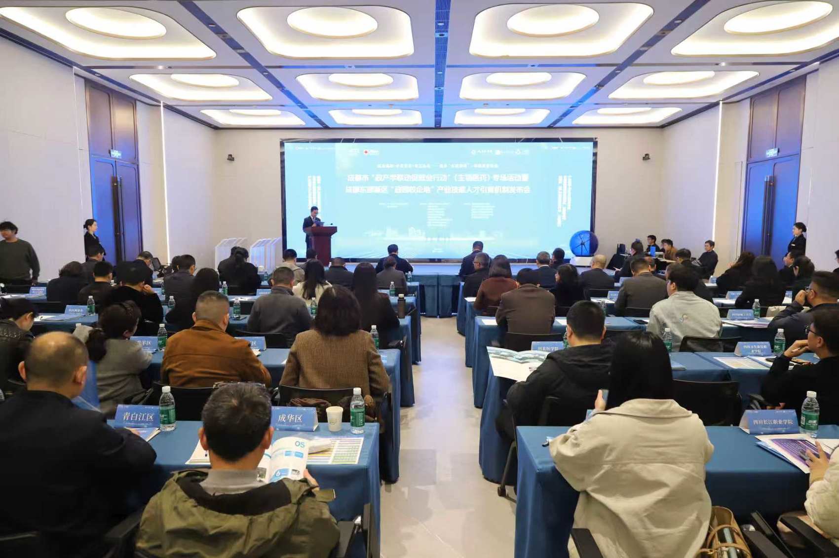 政策机制的落地生根,离不开实体平台与合作纽带的支撑。当天,成都市“蓉易就业”未来医学城园区站正式启动,集成政策咨询、岗位推送等四大核心功能,打造园区“15分钟就业服务圈”;未来医学城管理局与多所合作院校签订合作意向,搭建政园校企地合作工作站,推动校企资源常态化对接。