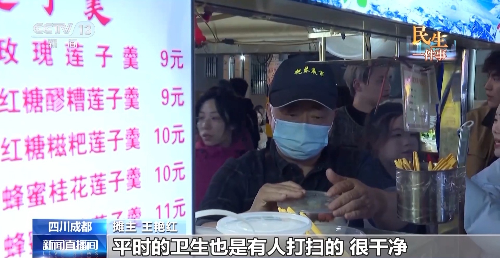 摊主 王艳红:现在都是夜市统一管理了,每个人都在自己的摊位上、自己规定的区域里面摆摊,平时的卫生也有人打扫,很干净。
