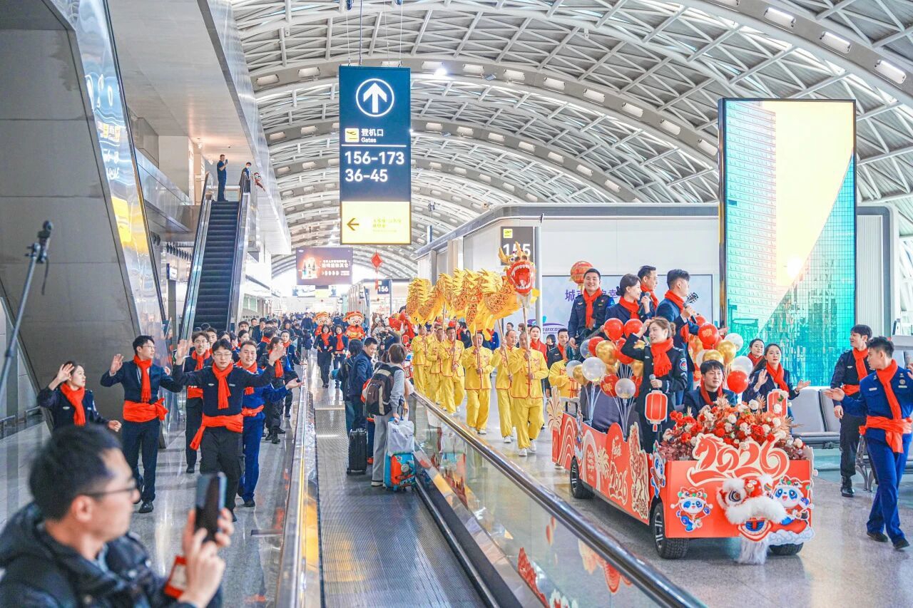 春运期间,成都航空枢纽统筹双流、天府两机场,在安全保障与服务品质上双线发力。双流机场联合顺丰推出成都八大区域行李双向免费配送服务,以“巴适空港”服务品牌为引领,深度联动地方文旅,精心策划“空港新春文化季”。天府机场调配运力,协同中外航空公司加密吉隆坡、曼谷、新加坡等热门国际航线,满足旅客跨境出行需求;同时,优化过夜服务保障,为超2万人次过夜旅客提供提前值机、行李寄存等服务,以及牙刷、毛毯等物资。