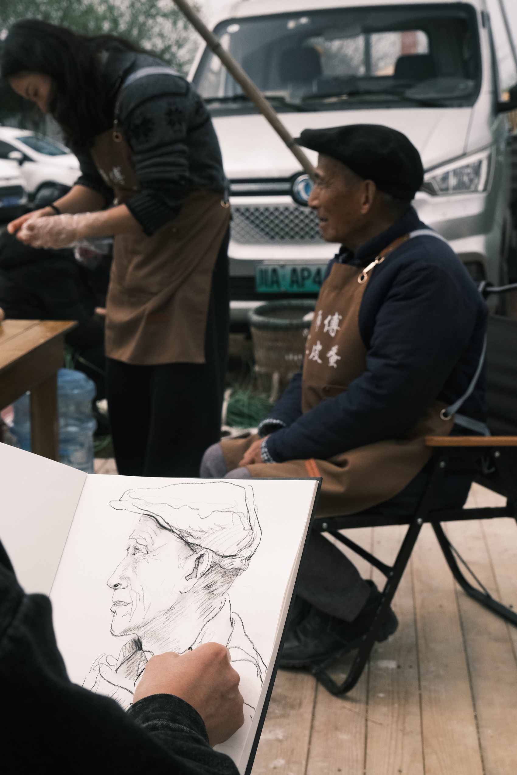 上午,新都区美术家协会副主席黄云飞快速地在素描本上描摹皮蛋制作技艺传承人。传承人身旁,手机正直播着制作过程。就在上周,延续150余年的百年“木厂会”首次以区级非遗身份亮相,他也第一次尝试这种新方式——非遗孙皮蛋仅三天在线上成交10万单,“这是我干了一辈子都不敢想的数字”。