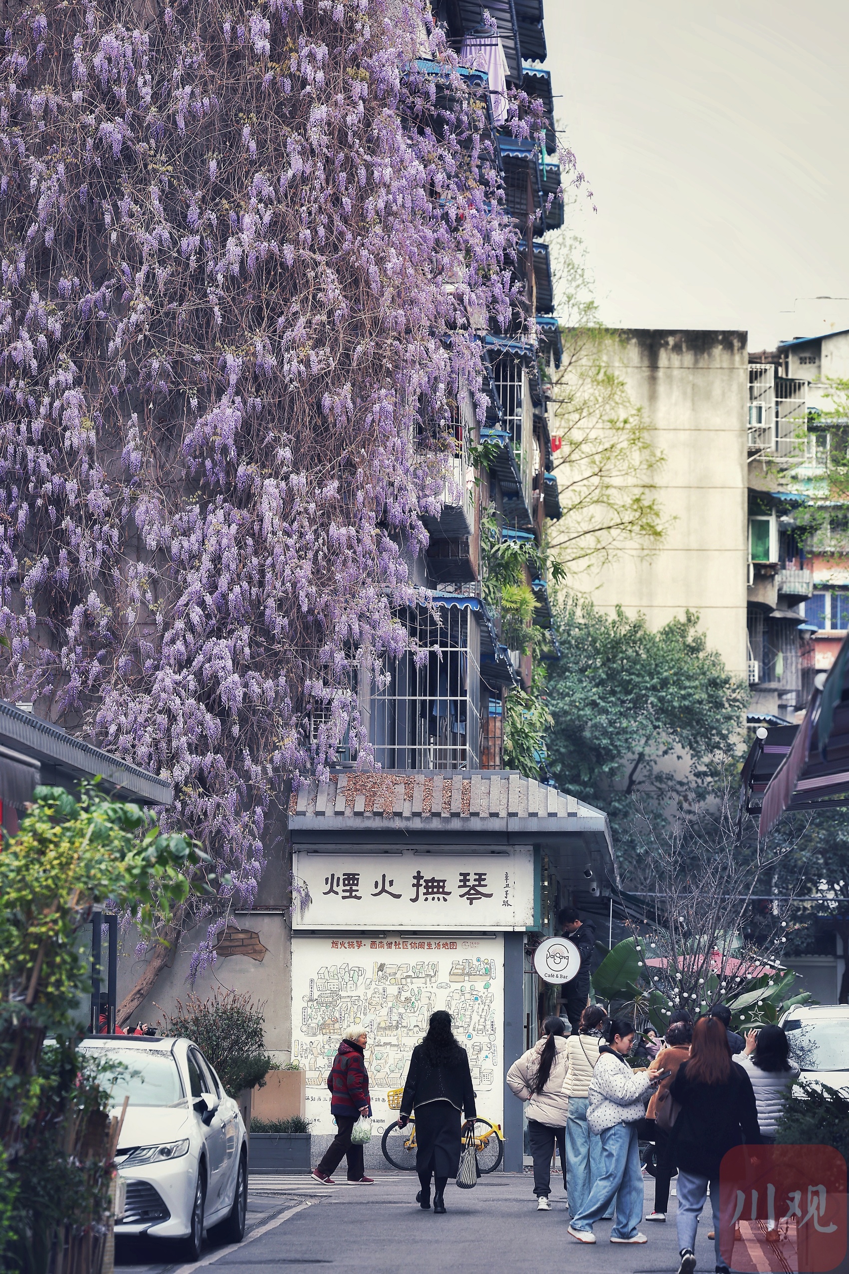 抚琴南一巷的紫藤花开如瀑布。