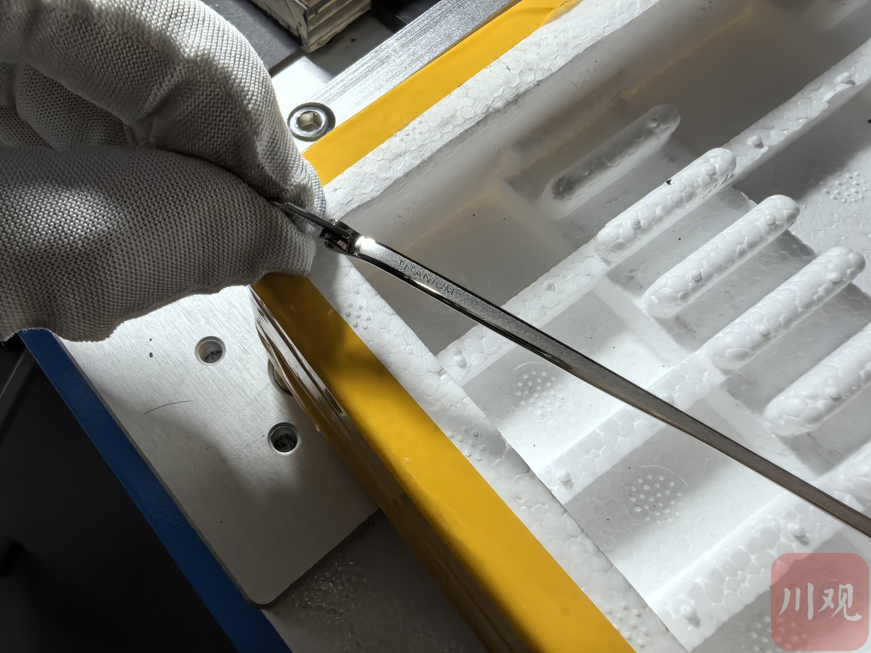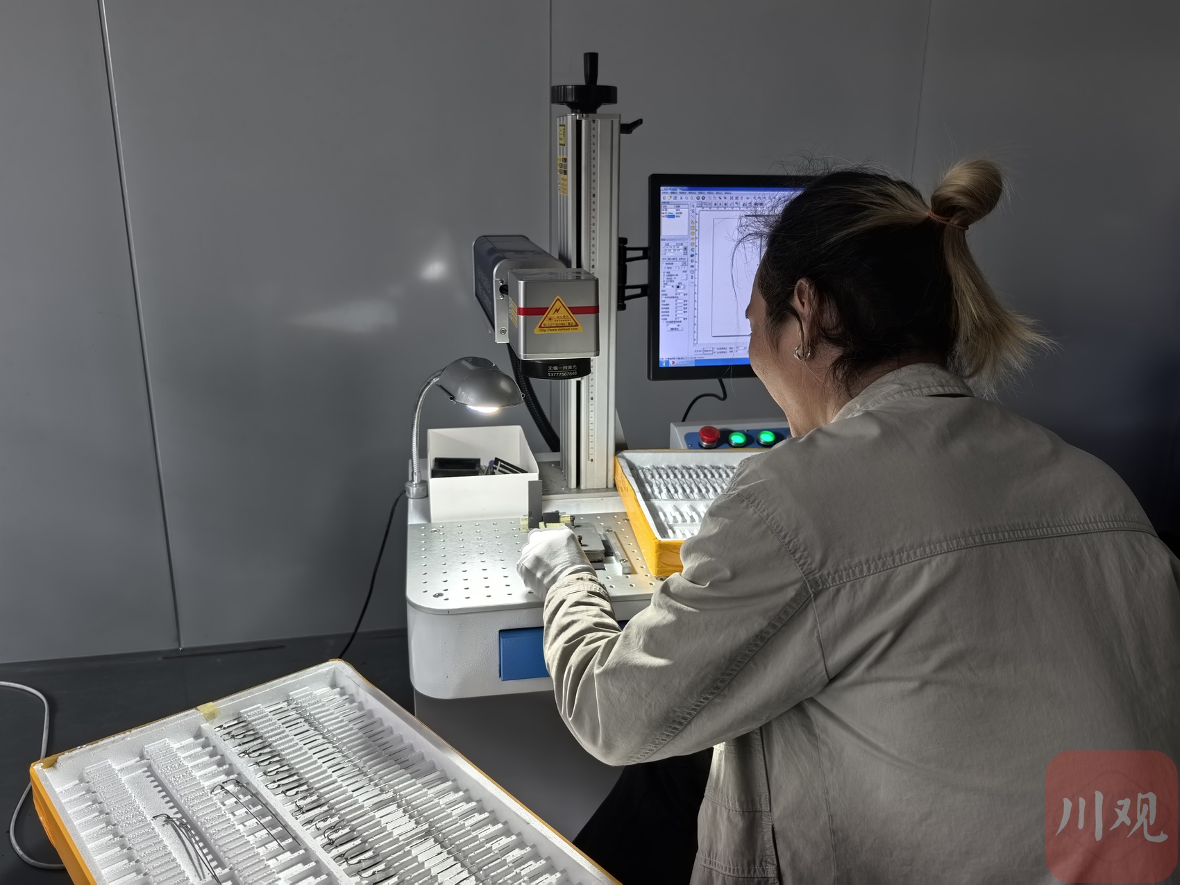 完成激光打标的钛合金镜腿。严佳敏 摄