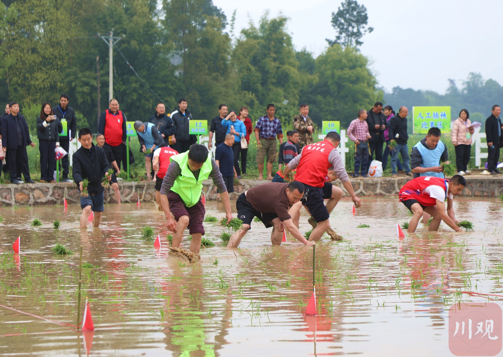 人工插秧比赛现场。黄建伟 摄