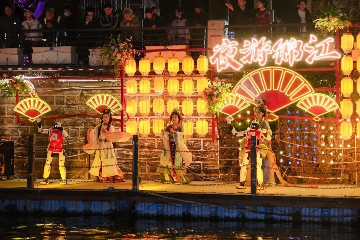 夜游IP破圈,点亮城市夜间经济。成都“夜游锦江”以“神骏出东方·锦江烟火盛”为主题,通过水岸联动、场景重构与科技赋能,将盖碗茶、成都糖画、灯会等非遗民俗搬上水面,让市民游客在行船中了解市井文化。