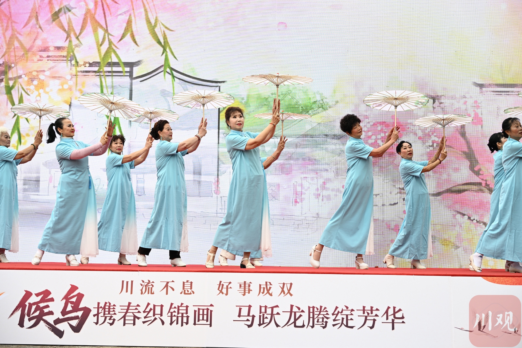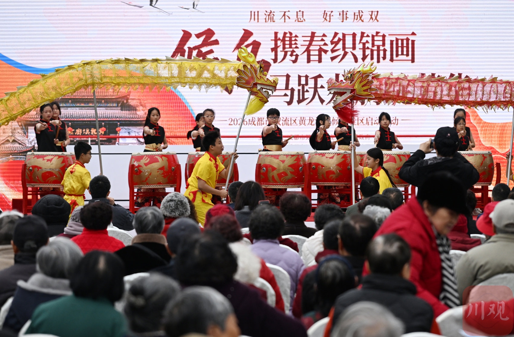 2026年3月18日,成都市双流区黄龙溪镇廊桥广场洋溢着热闹喜庆的氛围,“候鸟携春织锦画,马跃龙腾绽芳华”为主题的古镇旅居型候鸟社区活动在此举行。