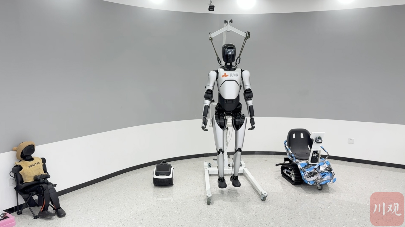 在阿加犀展厅内,一款身高约1.8米的人形机器人格外引人注目,它是企业的明星产品——“通天晓”。
