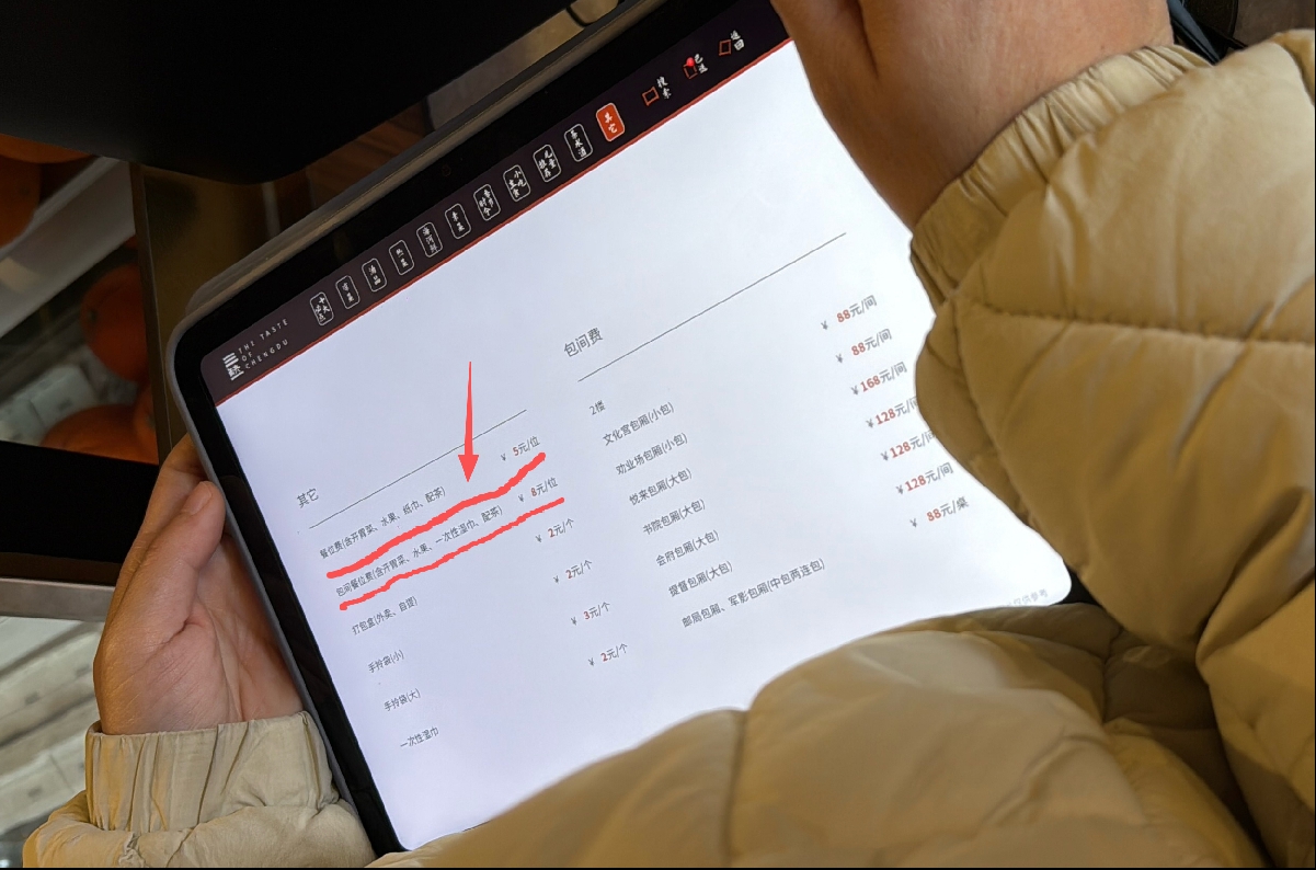 比如在三缺一·成都味川菜(春熙路店),发现该店电子菜单“其他”选项中,明确标注有餐位费收费标准:普通餐位费5元/位(含开胃菜、水果、纸巾、配茶),包间餐位费8元/位。记者询问可否不选择这些项目时,工作人员回应称“可以”。