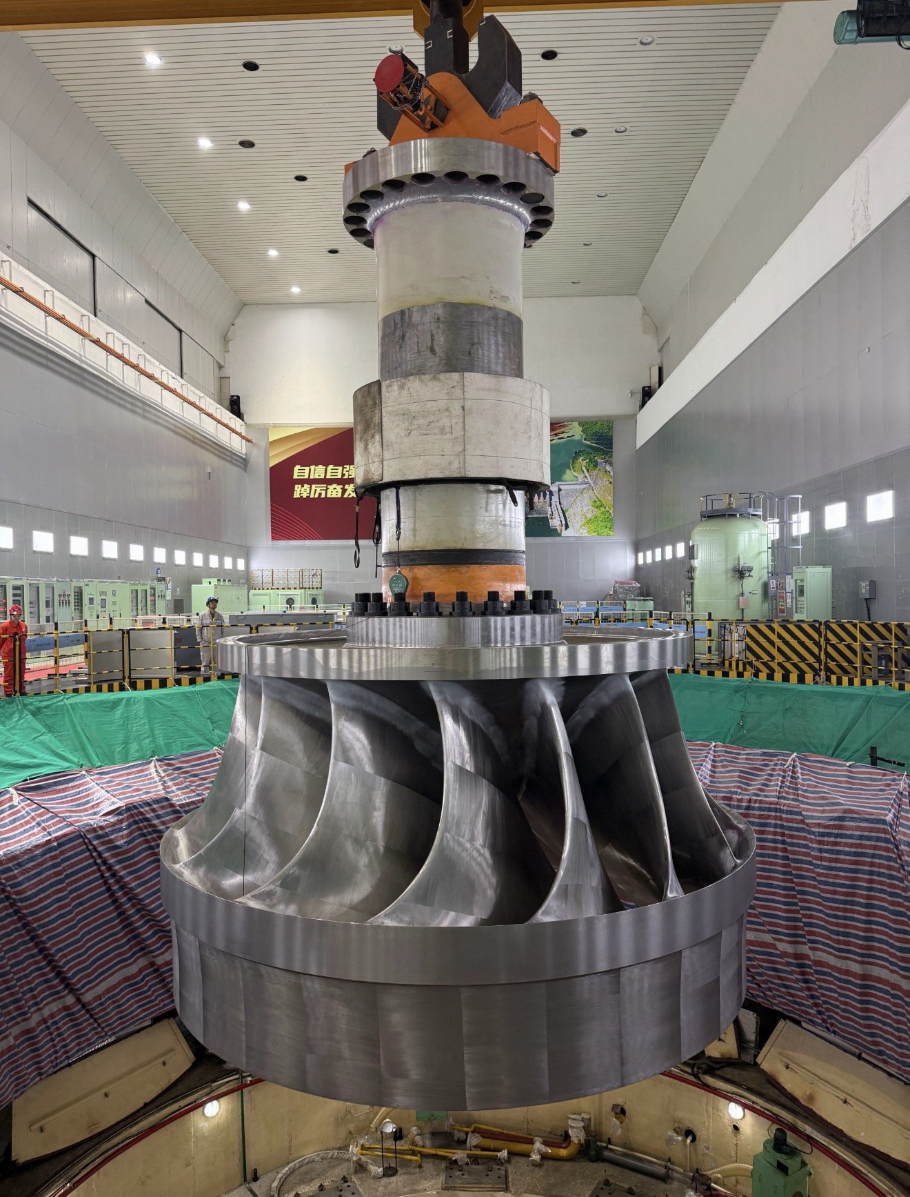 2022年4月,由东方电机自主研制的适应宽负荷稳定运行的大朝山水电站首台水轮机安装调试完成,投入商业运行,各项技术指标全面满足合同要求,树立行业新标杆;2025年1月,第二台新转轮安装调试完成并正式投运;目前,第三台转轮已进入总装冲刺阶段,预计2026年4月投产发电。