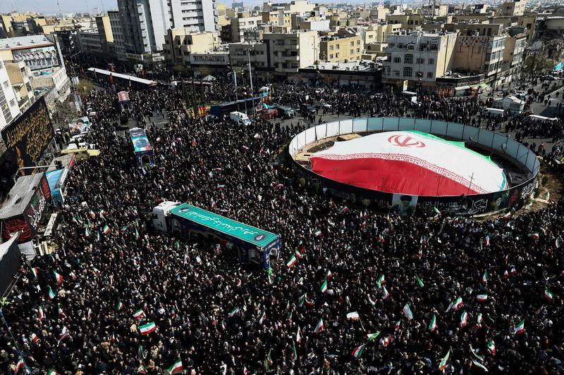 3月18日,伊朗民众在首都德黑兰革命广场参加葬礼。