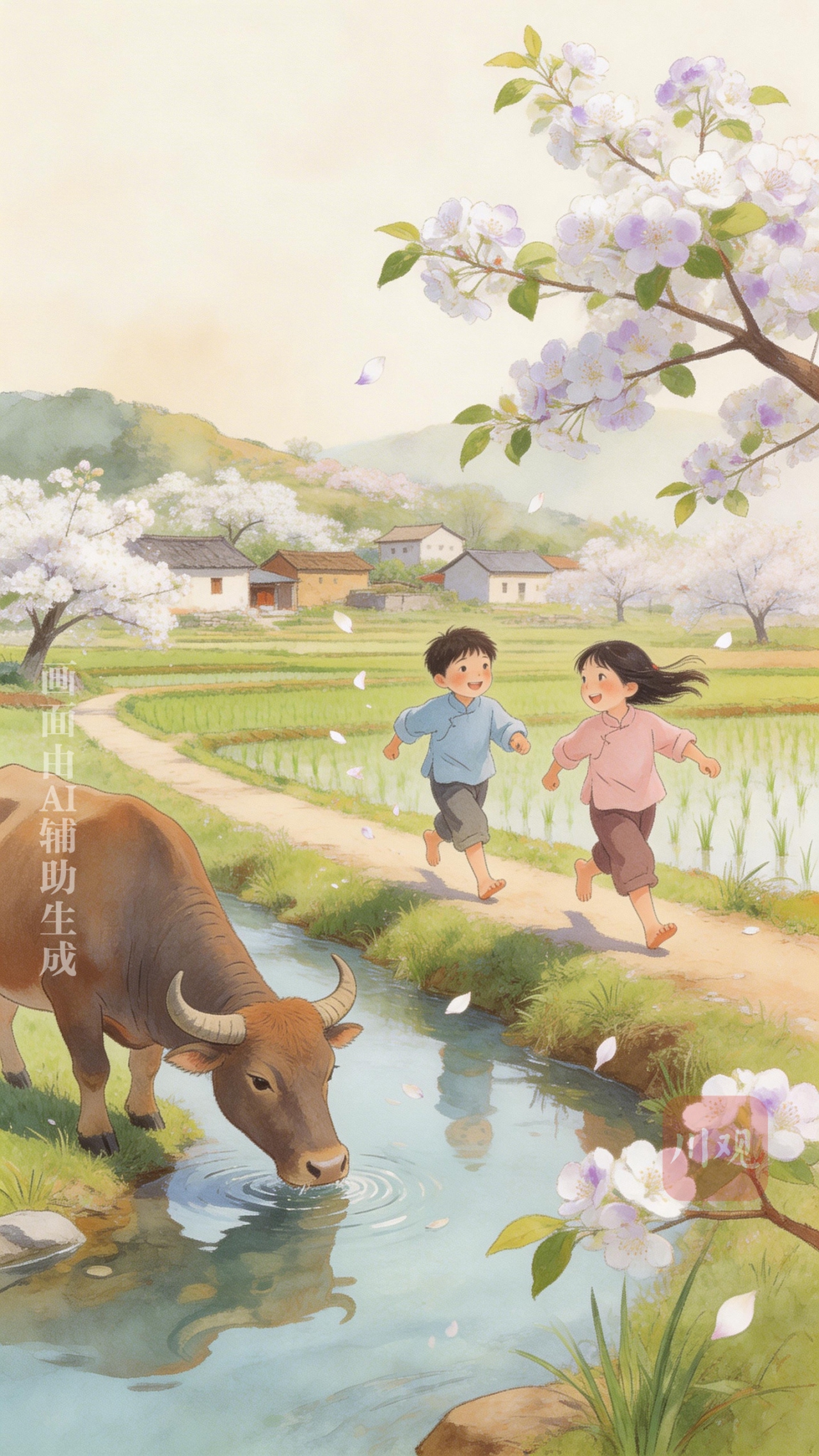 每年桐子花开时,故乡大地上一块一块的冬水田里,总有膘肥体壮的大水牛拉着沉重的犁铧,翻耕出乌黑的泥土,泥土上升腾起一缕缕雾气,醇香的泥土味弥漫开来,整个小山村便温润如玉了。刚翻犁开的泥块裸露田间,一些麻雀、画眉鸟叽叽喳喳在天空中盘旋,时而飞向树梢,时而冲向刚翻犁开的泥块上找寻虫子。