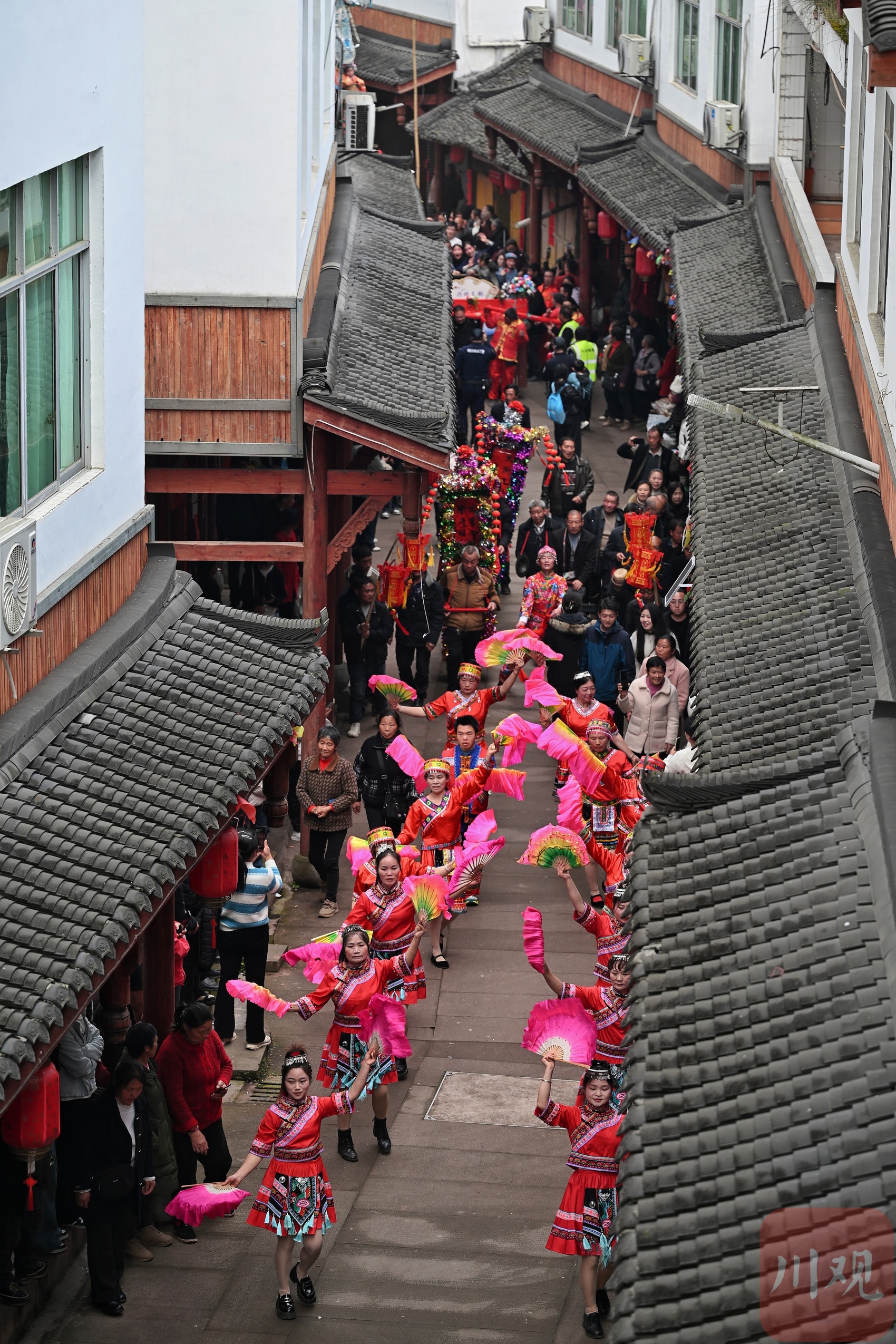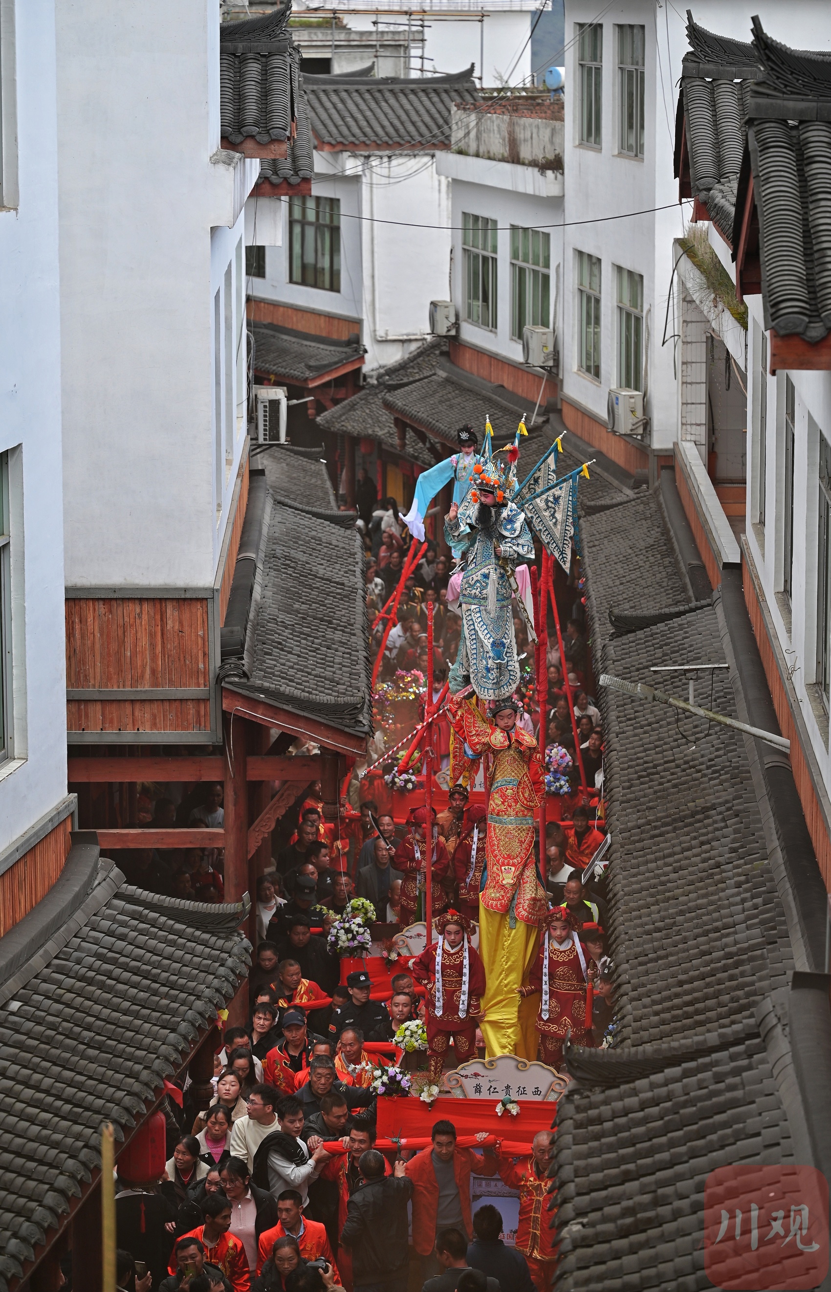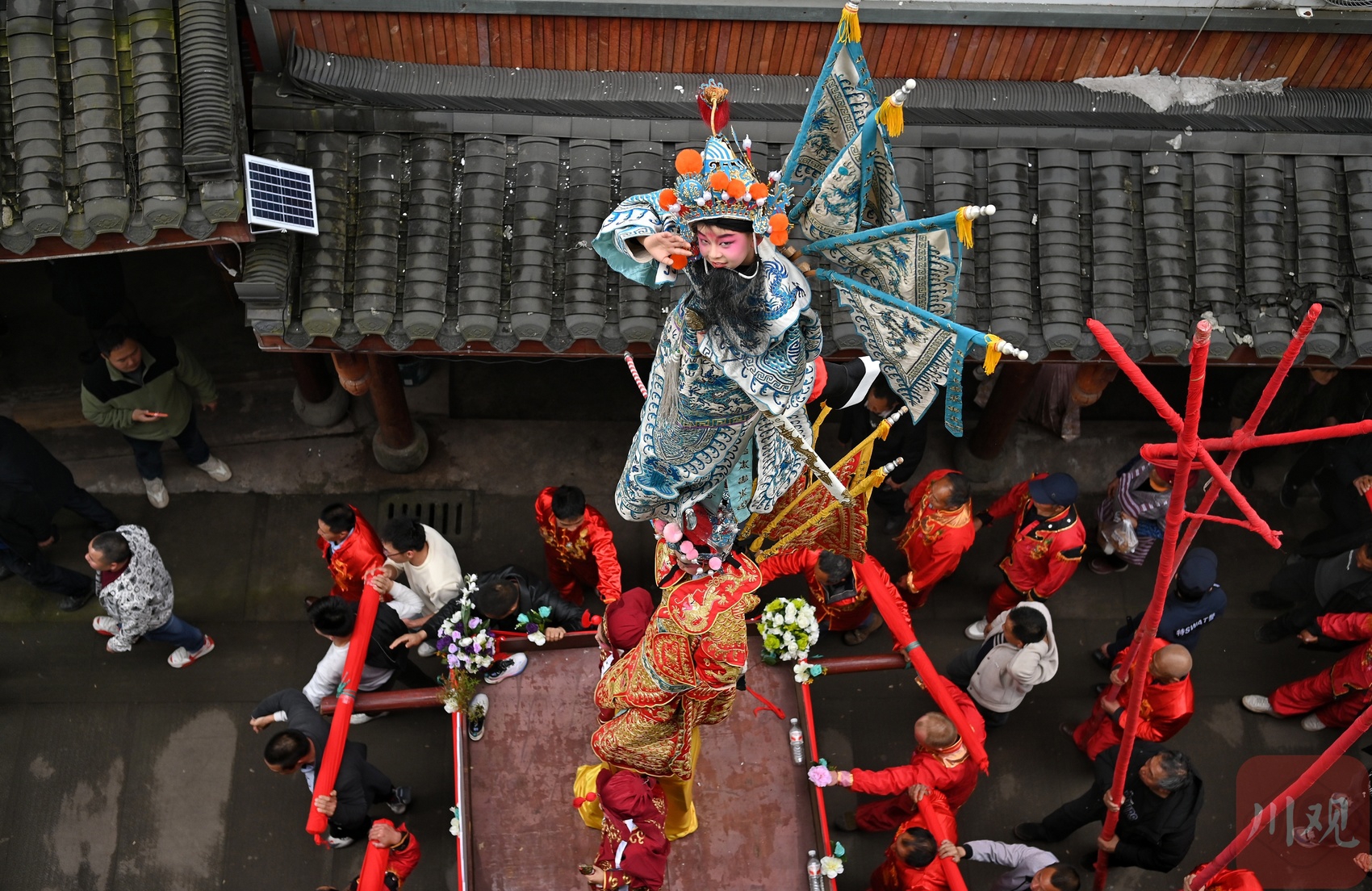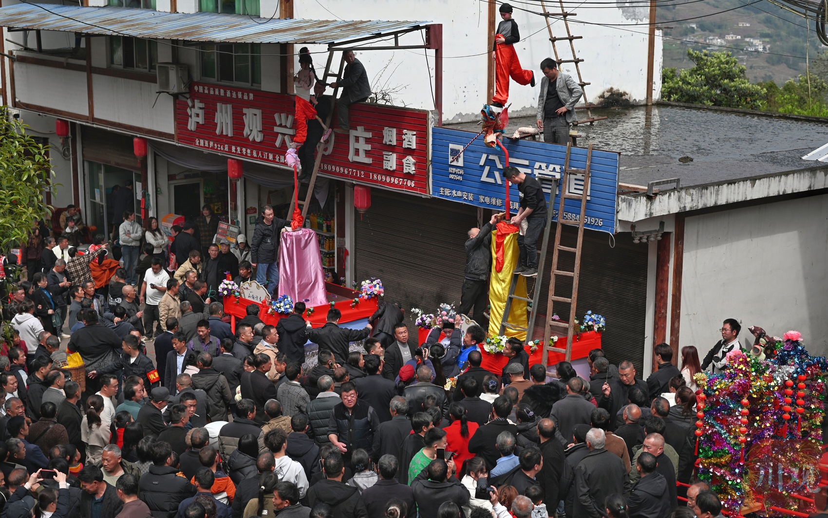 现场,非遗建武僰道木台铁桩巡游表演是绝对的视觉焦点,几米高的桩架直指云霄,小演员们于桩顶定格造型,身姿轻盈如燕,稳若磐石,各种民俗表演穿行其间,与“龙抬头”习俗交相辉映。